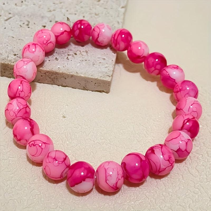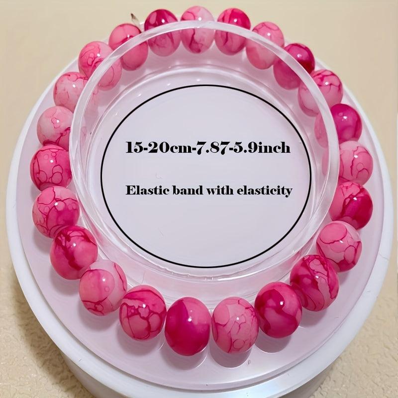 This stylish elastic bracelet is perfect for adding a touch of bohemian flair to your outfit. It features beautiful pink crystal beads and 8mm round gemstones. Makes a great gift for Valentine's Day!
