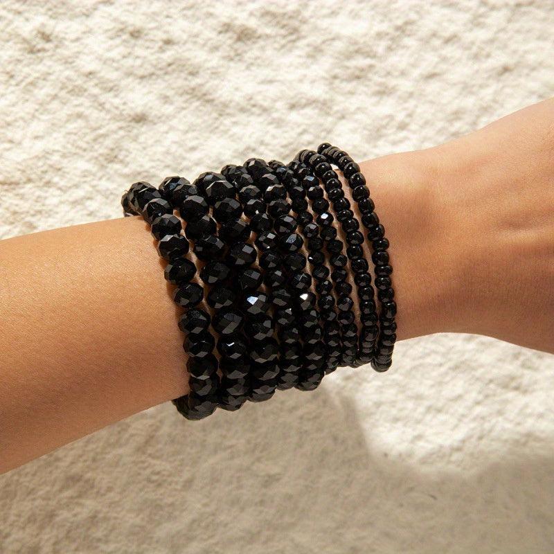 Enhance your summer look with this set of Bohemian style layer beaded bracelets. These bracelets feature a vibrant and colorful design that adds a touch of boho charm to your outfit.