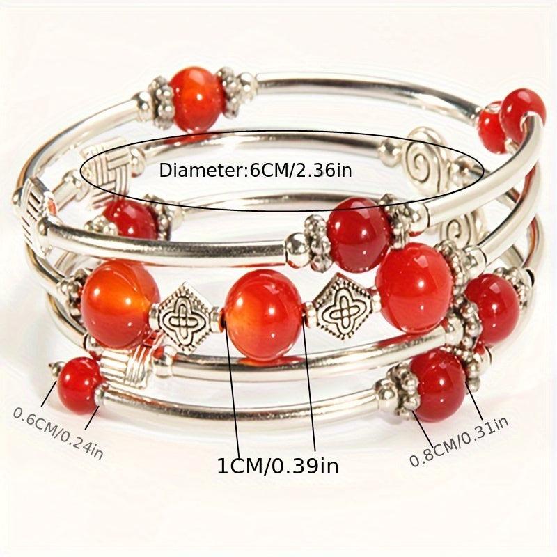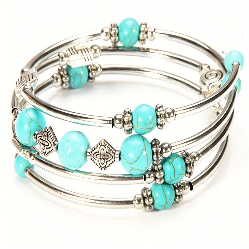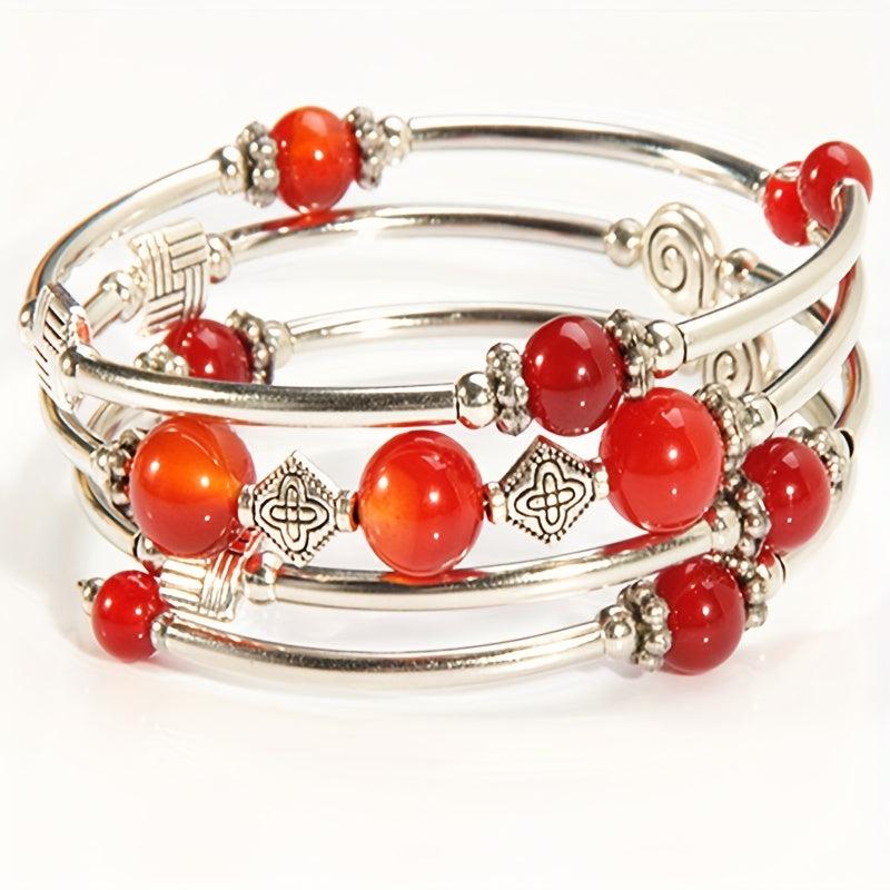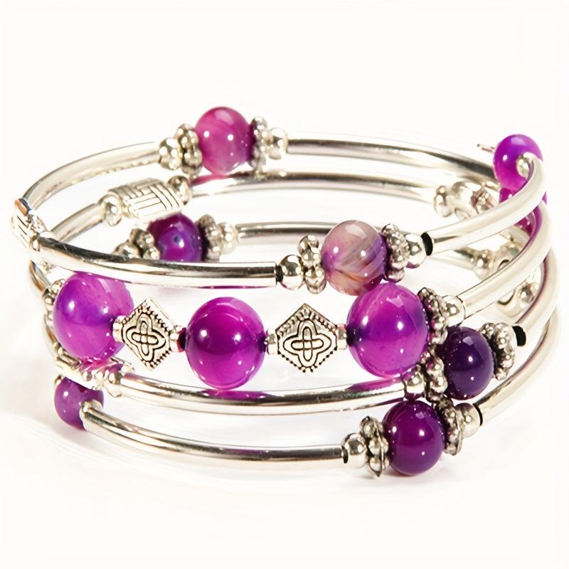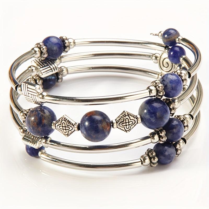 This beaded bracelet features natural stones and thick silvery metal beads, perfect for a bohemian look. It makes a great gift for women on Mother's Day or any special occasion.