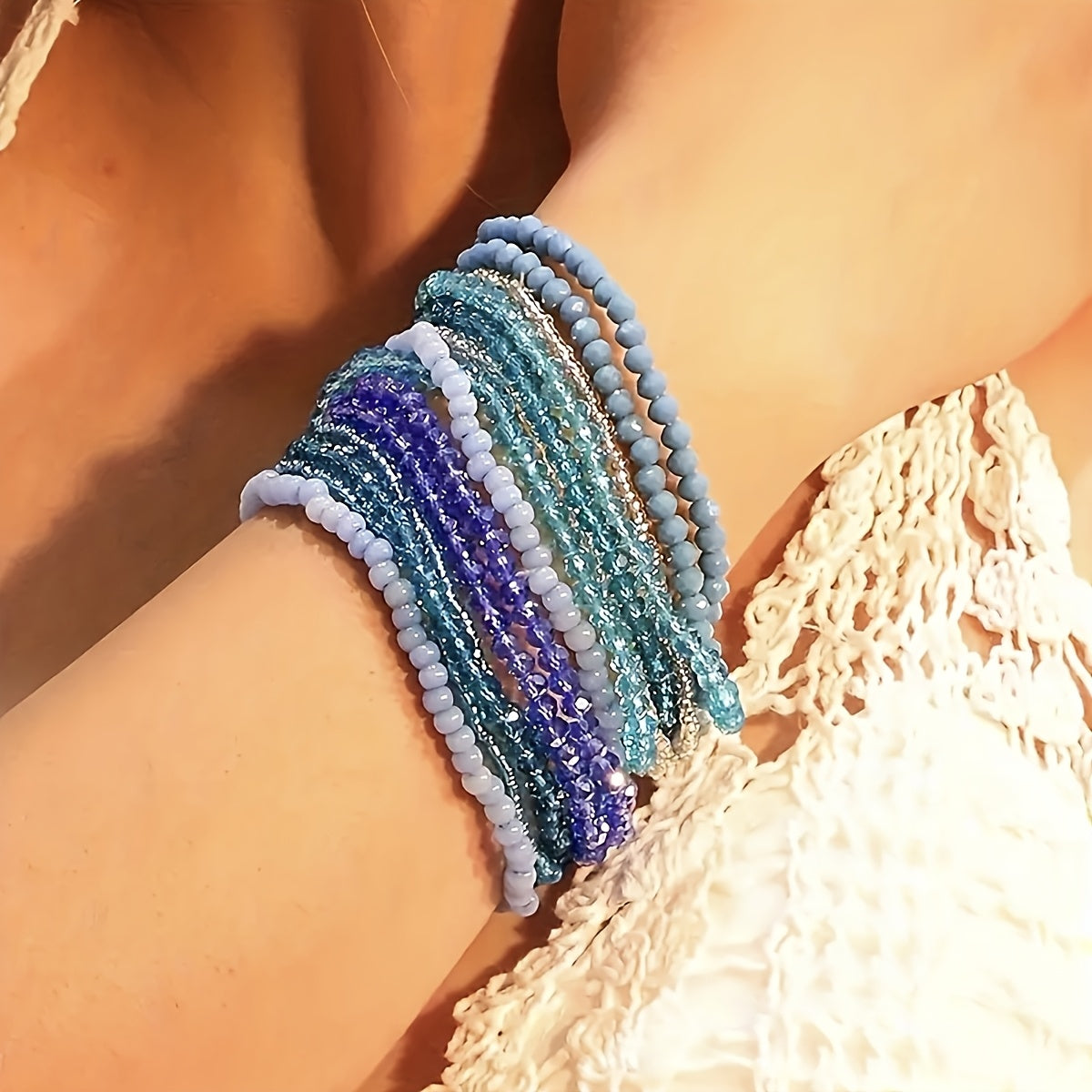 This 14pcs bracelet set features a bohemian style with colorful beads. Perfect for daily wear or travel party accessories. Great as a gift for friends.