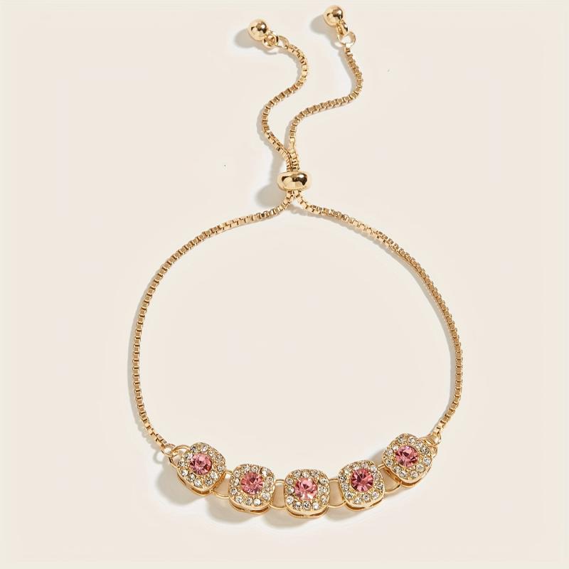 Boho Adjustable Box Chain Bracelet with Rhinestones