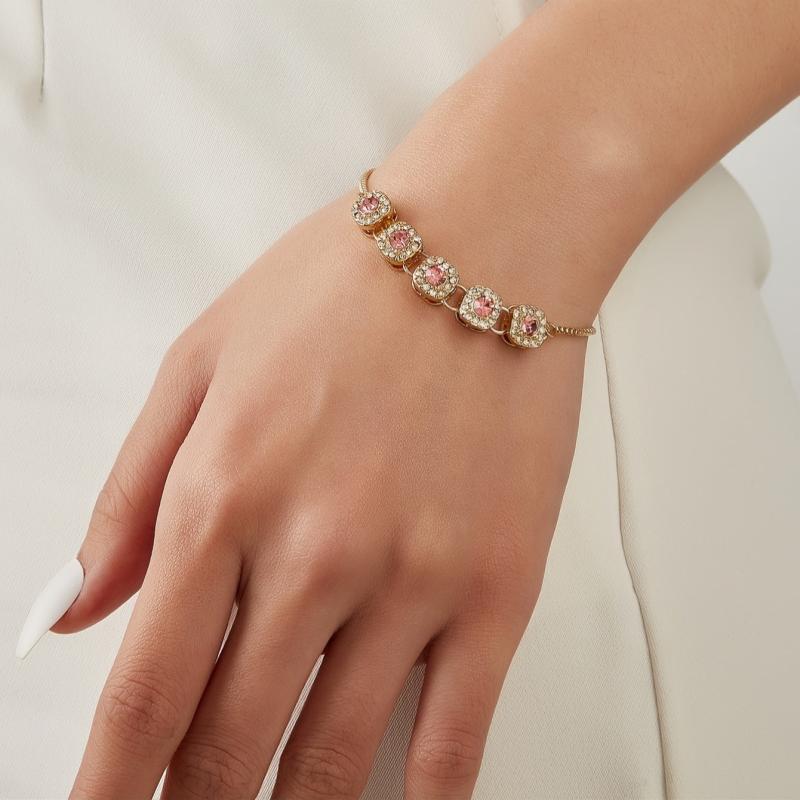 Elevate your style with this boho-inspired adjustable bracelet featuring sparkling rhinestones and 14K golden plating. Perfect for daily wear or as a thoughtful gift for loved ones.