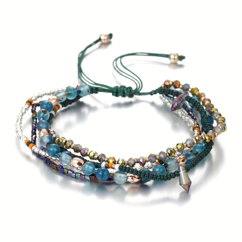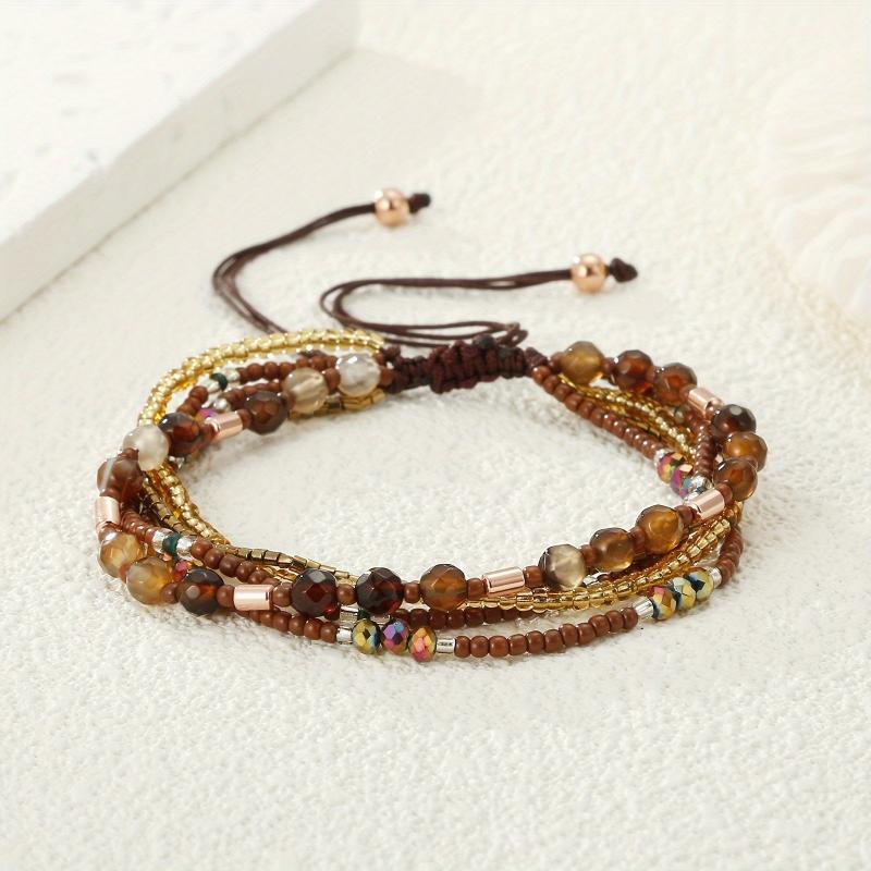 Elevate your style with this boho beaded bracelet featuring faux gemstones. Perfect for vacations or casual attire.