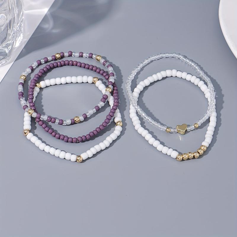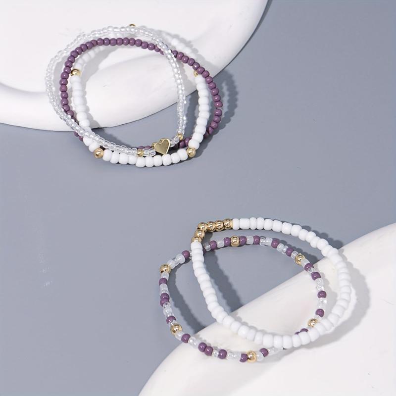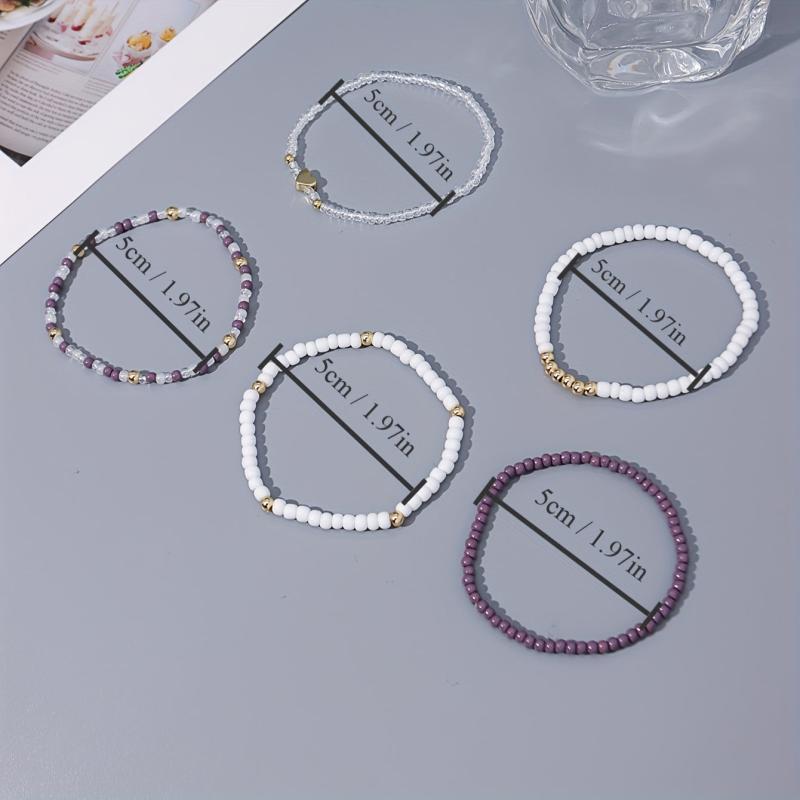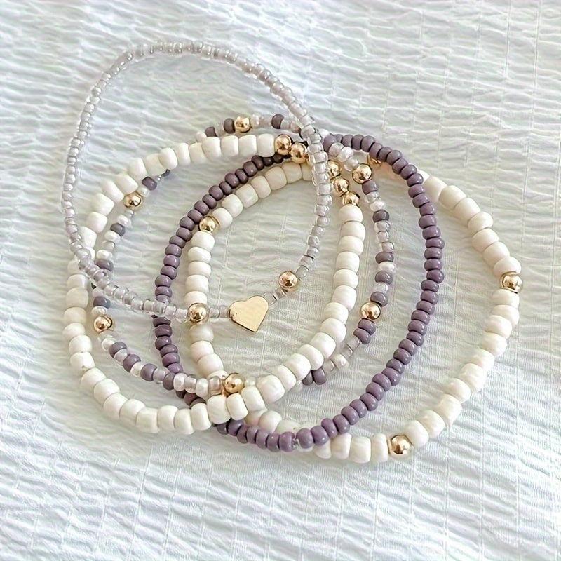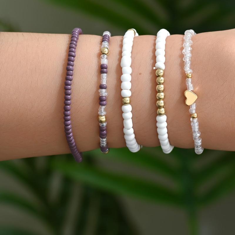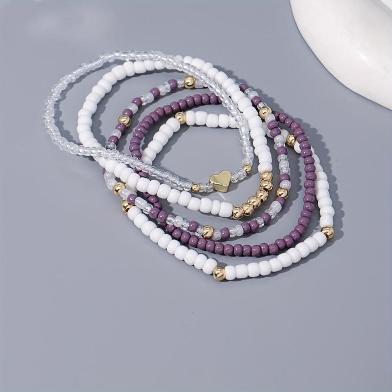 Create a bohemian vibe with this 5-piece bracelet set featuring heart charms. Perfect for vacations, festivals, parties, and daily wear.