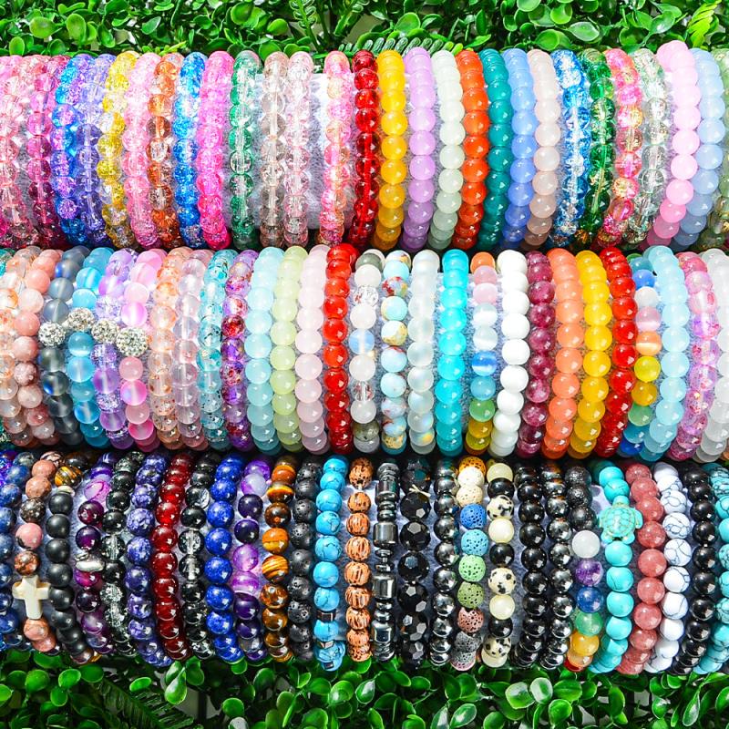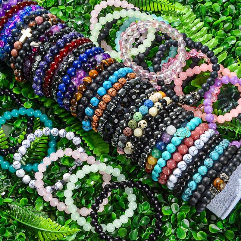 Embrace bohemian charm with this set of 20 natural stone beaded bracelets. Perfect for any season and occasion, these bracelets add a touch of whimsy to your look.