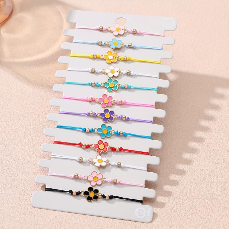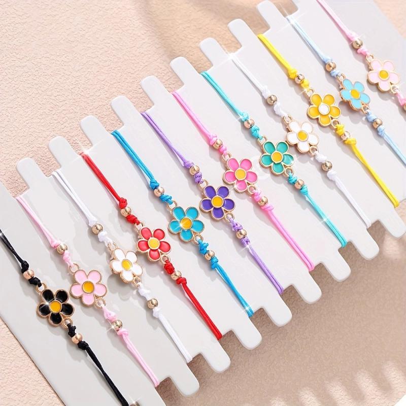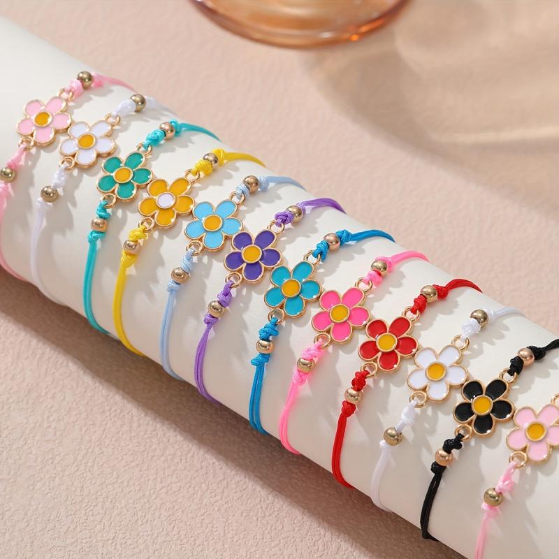 Add a touch of festivity with this set of 12 vibrant daisy bracelets. Perfect for beach parties and everyday wear, these colorful accessories make great gifts for family and friends.