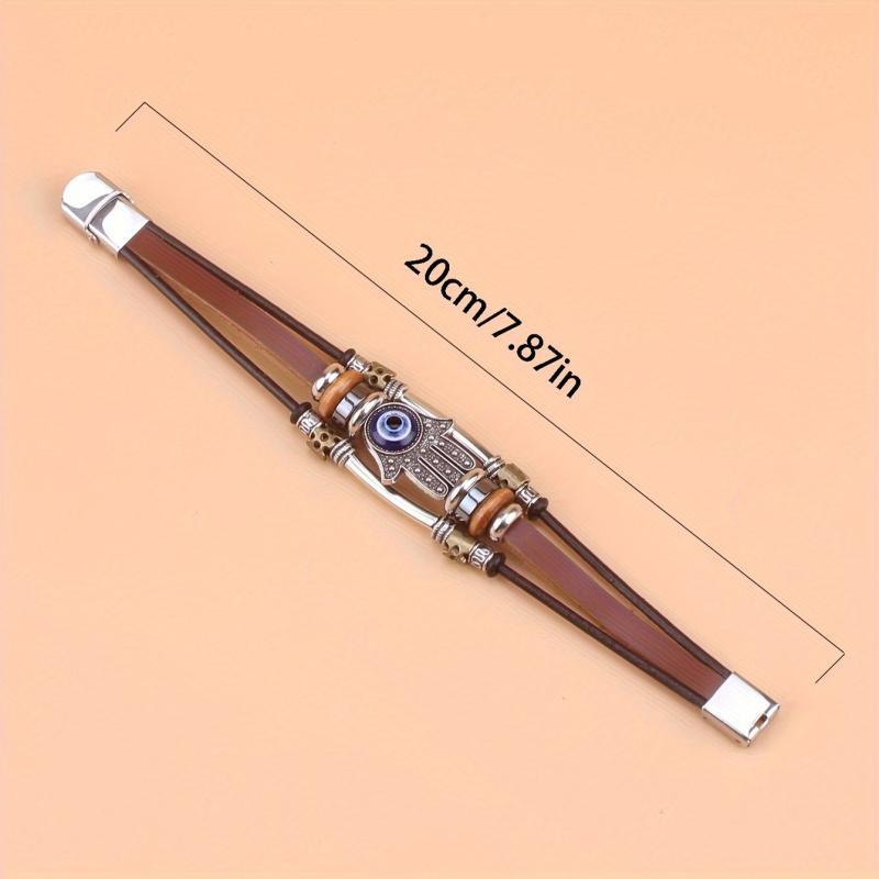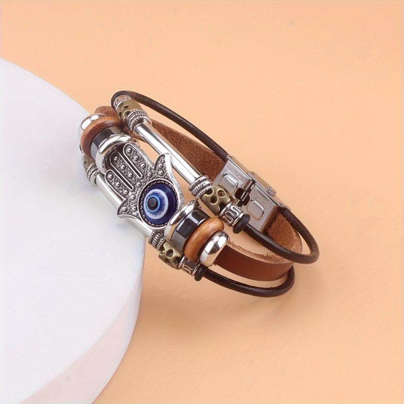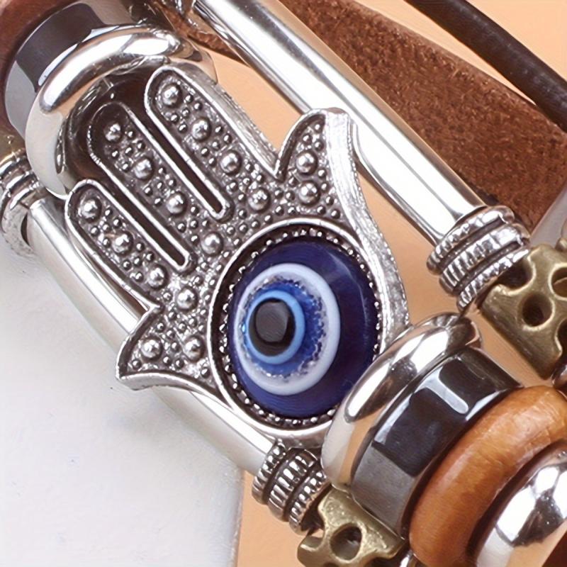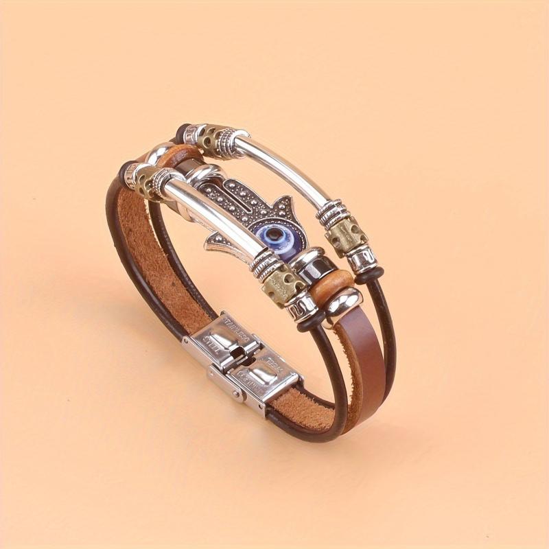 Add a touch of bohemian style to your look with this Fatima palm eye bracelet. Crafted with colorful beads, genuine leather, and a sturdy stainless steel buckle, it's perfect for daily wear.
