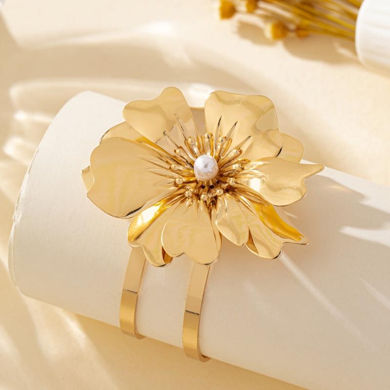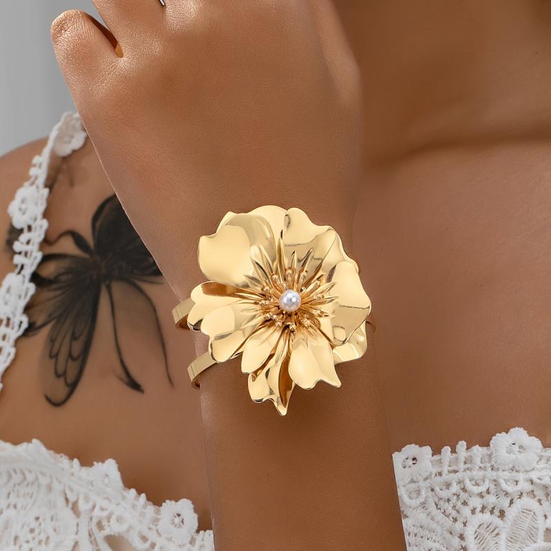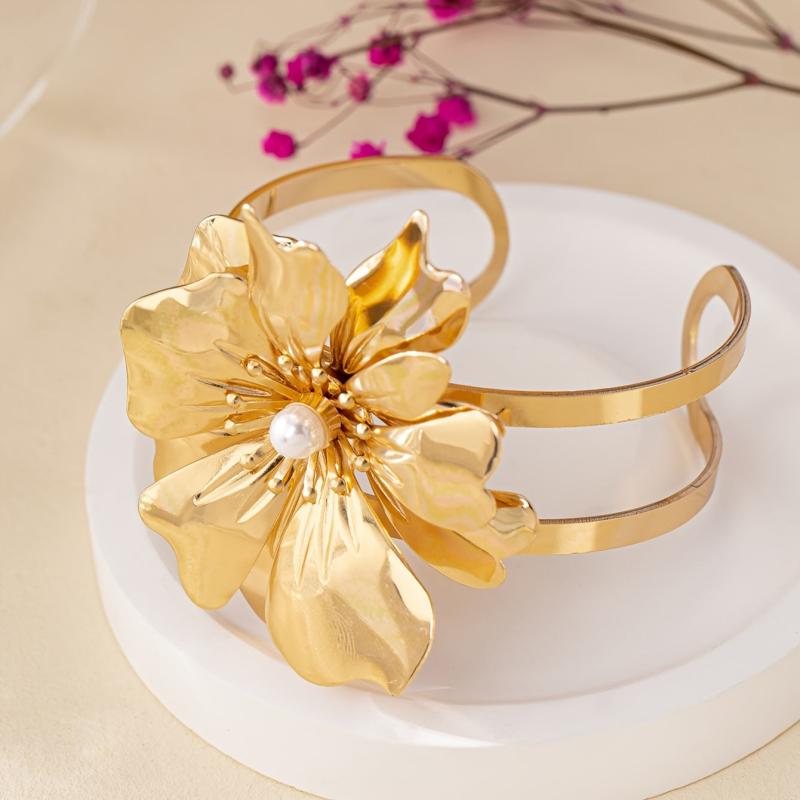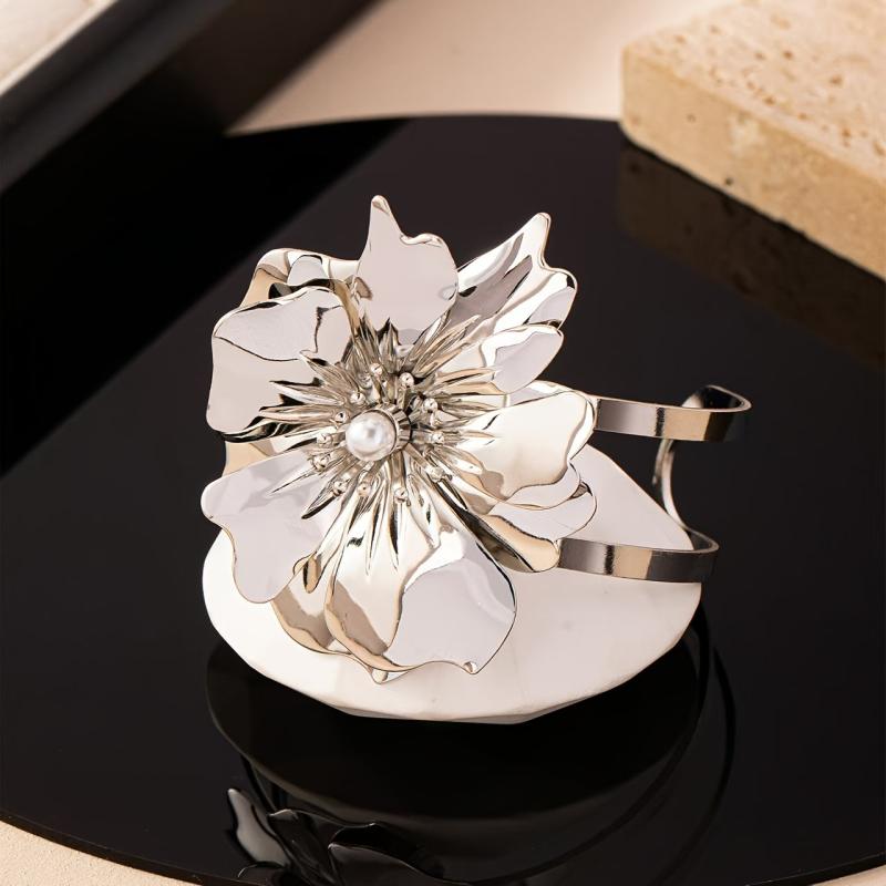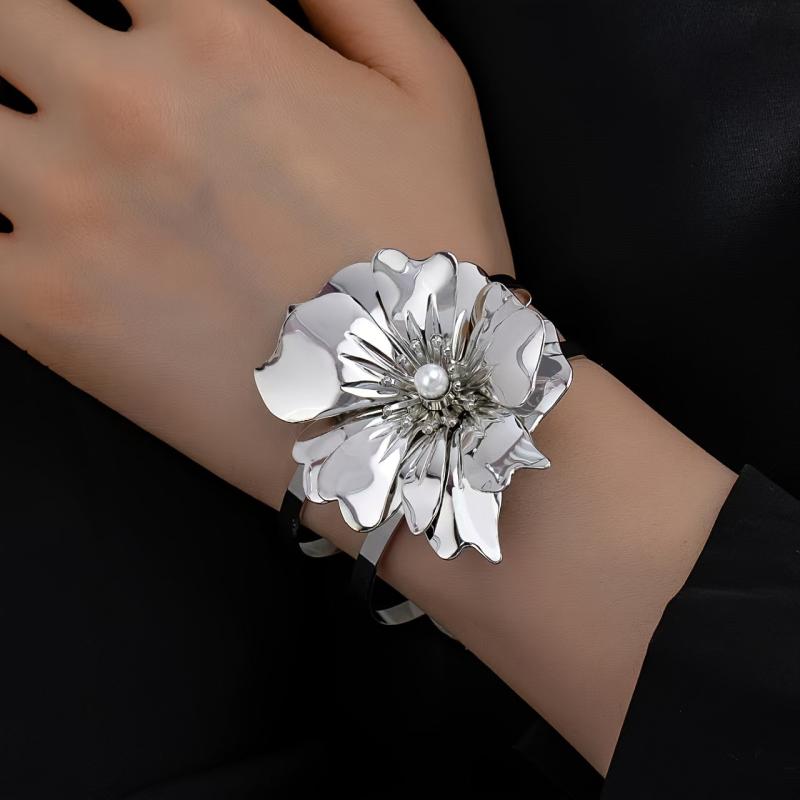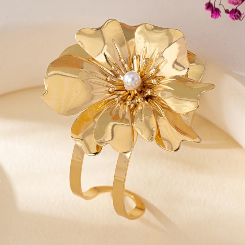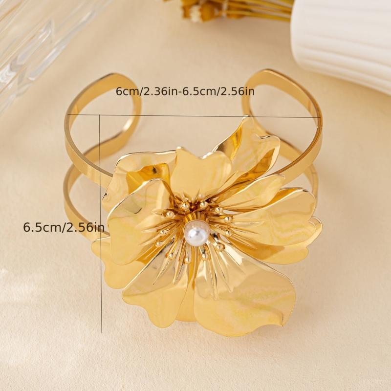 Elevate your style with this versatile open cuff bracelet featuring a boho inspired floral and geometric design. Perfect for both casual and party outfits.