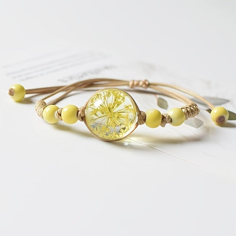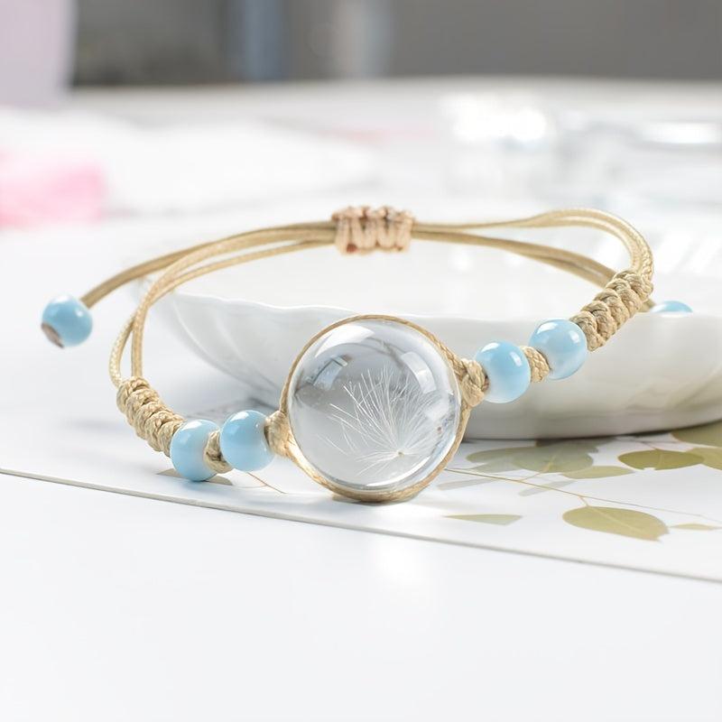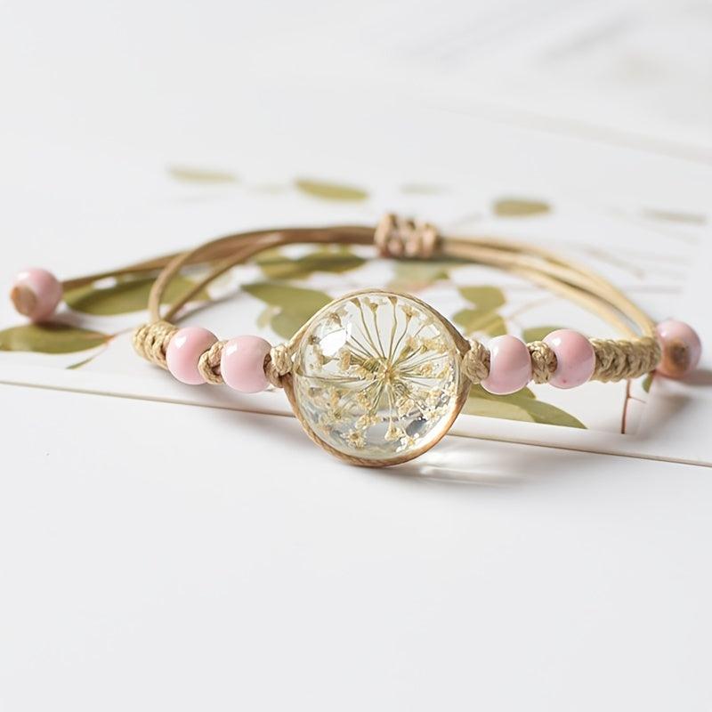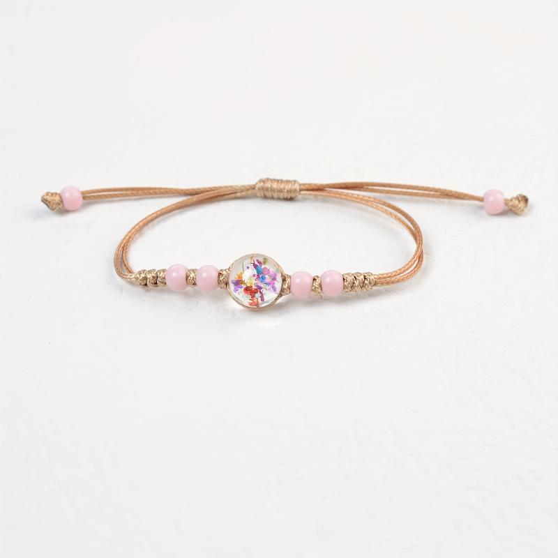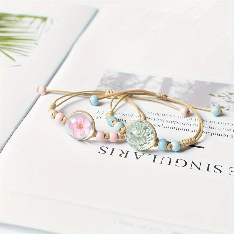 This beautiful bracelet features a boho design with flower and bead accents in pink and teal colors. The sparkling stones add a touch of elegance to the piece, making it a perfect accessory for couples or friends to share.