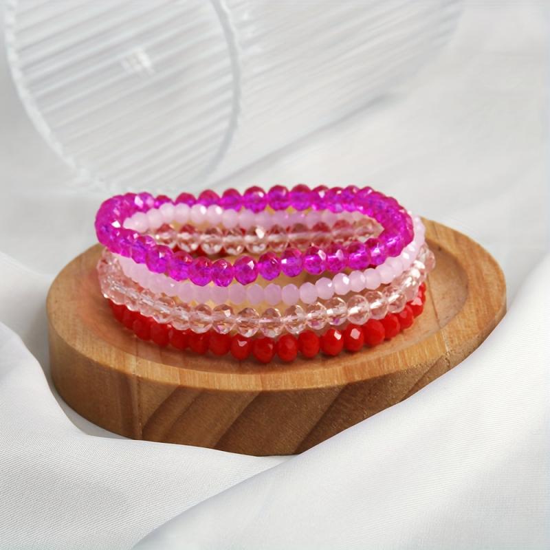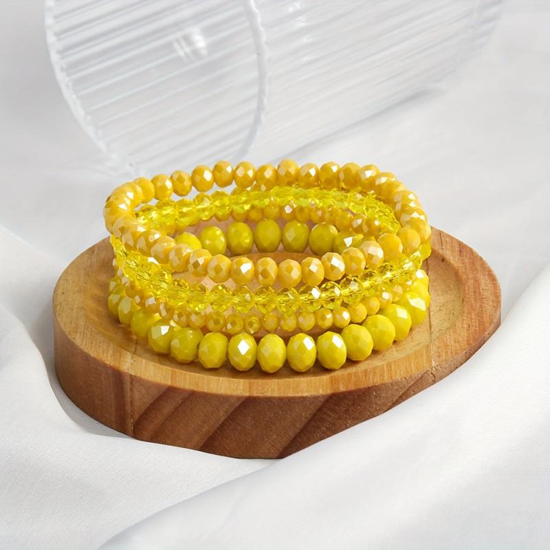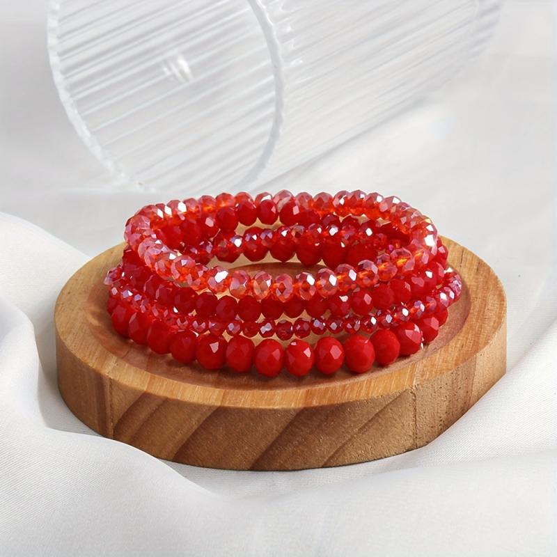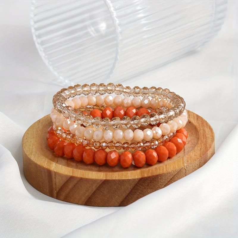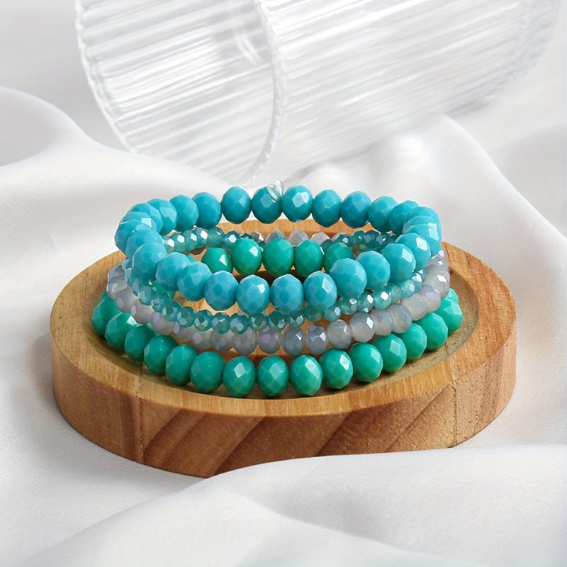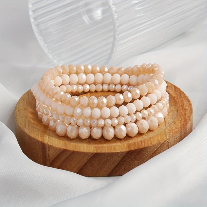 Elevate your bohemian style with this set of elastic bracelets made of multicolored glass beads in sizes 4 6 8mm. Stackable design for a layered look.