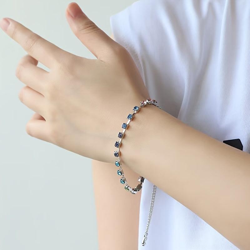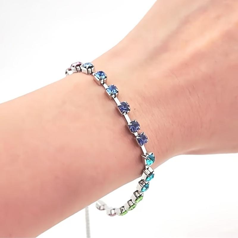 Add a touch of bohemian flair to your daily wear with this adjustable wristband featuring glitter copper and colorful CZ. Perfect for any occasion!