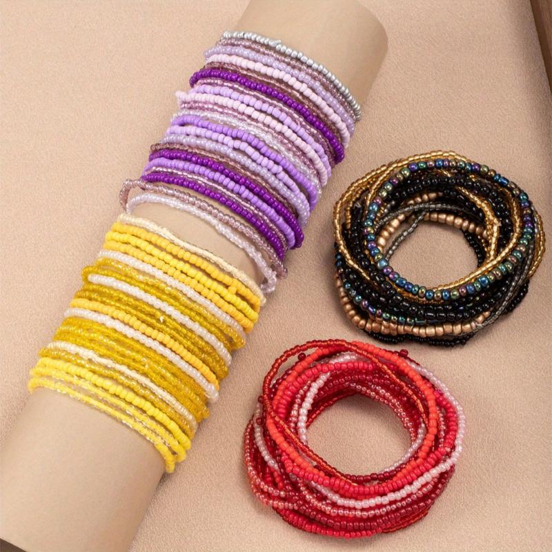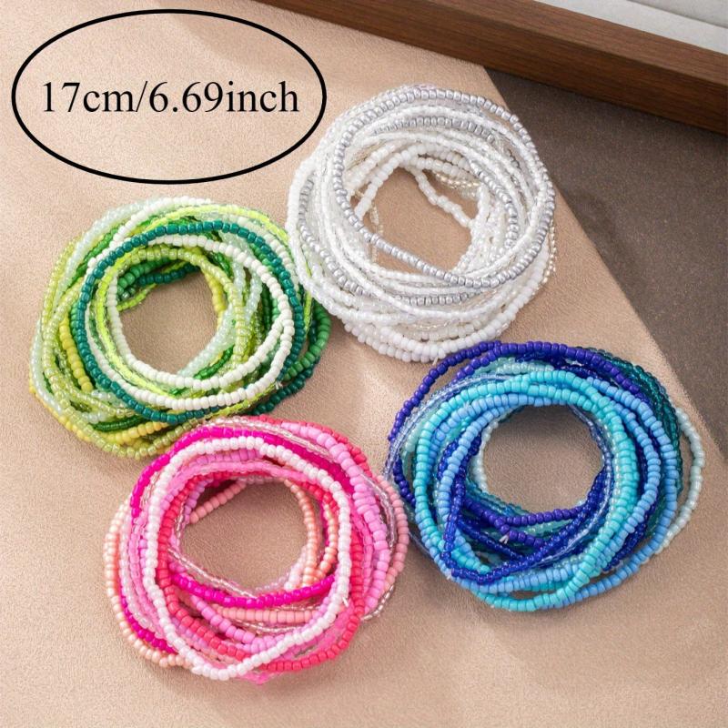 This set includes 20pcs of bohemian style elastic bracelets with a gradient seed bead design. Perfect for adding a pop of color to your outfit.
