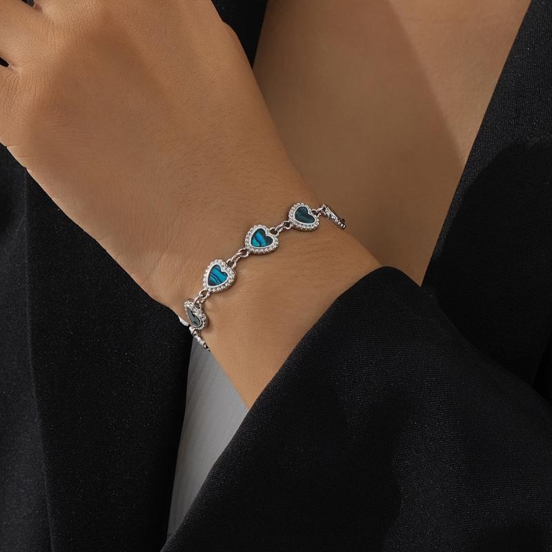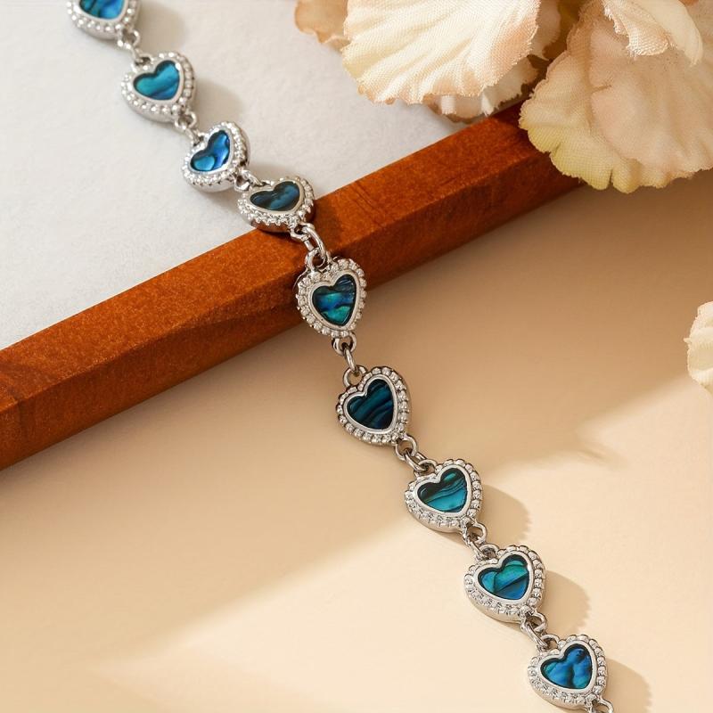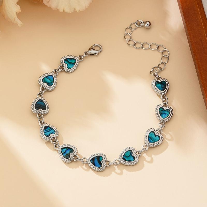 Boho Heart Bracelet with Abalone Shell Inlay Charm