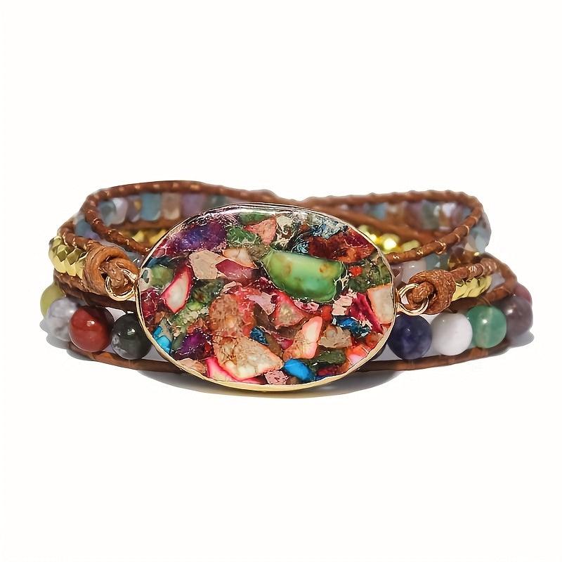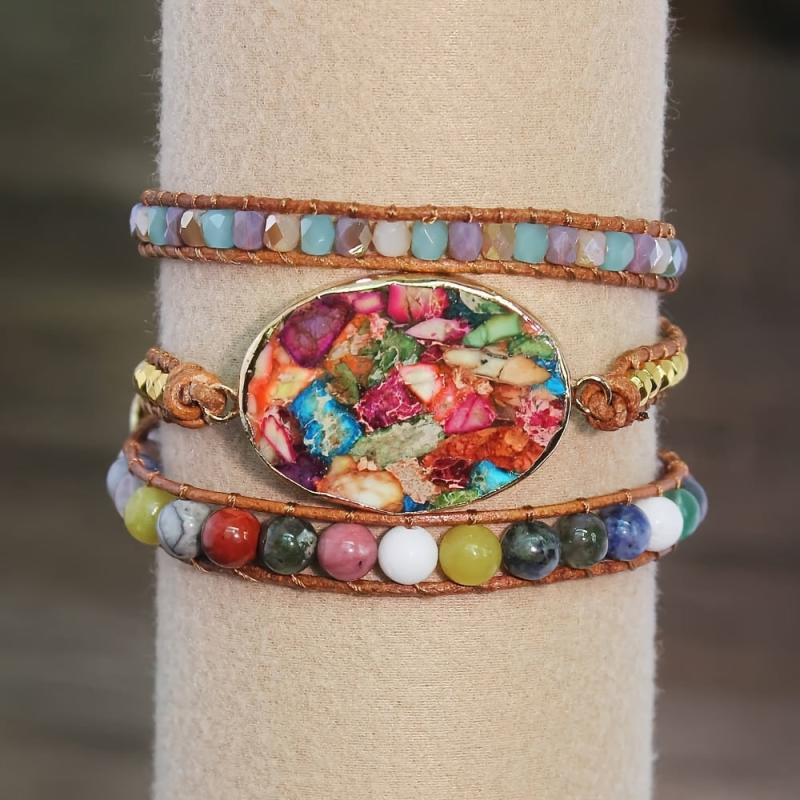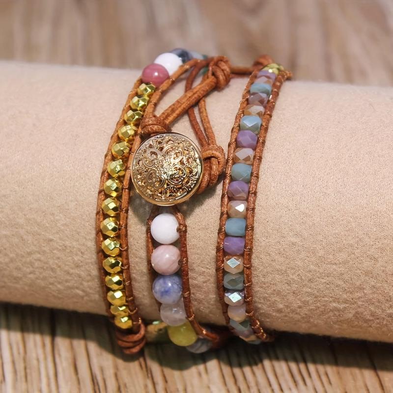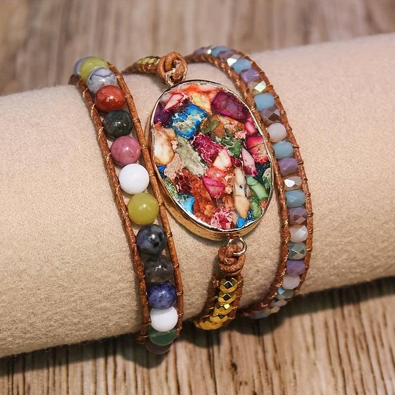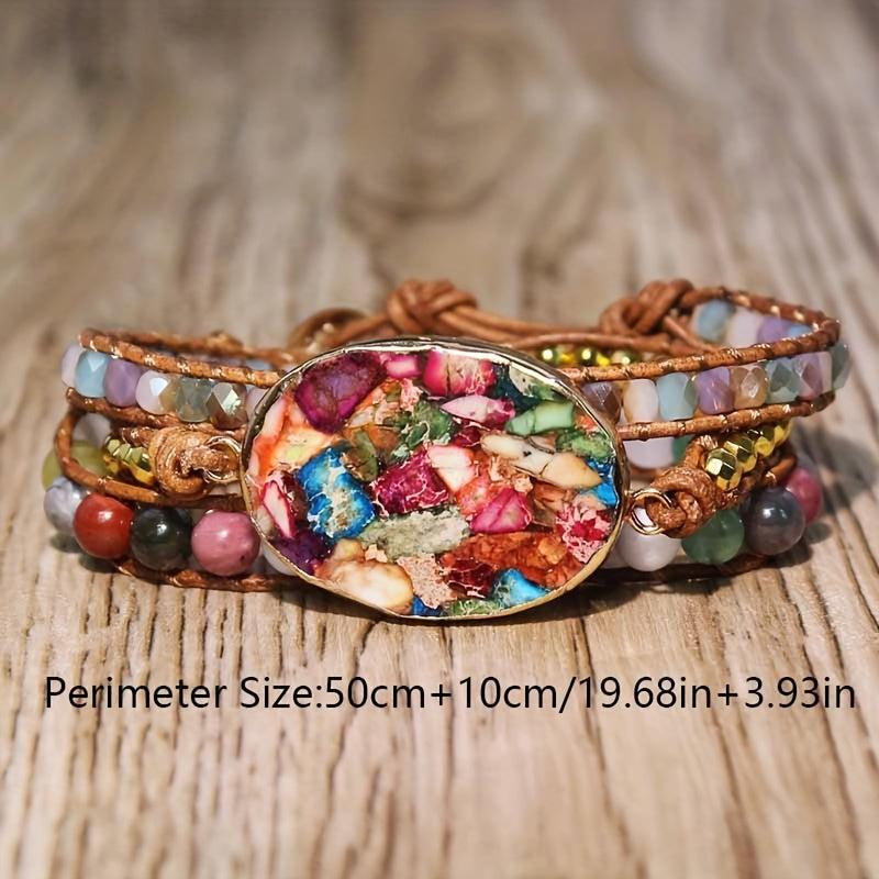 Elevate your style with this boho handcrafted leather bracelet adorned with stunning stones. A perfect accessory for a chic and trendy look.