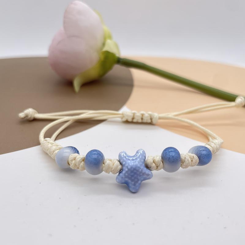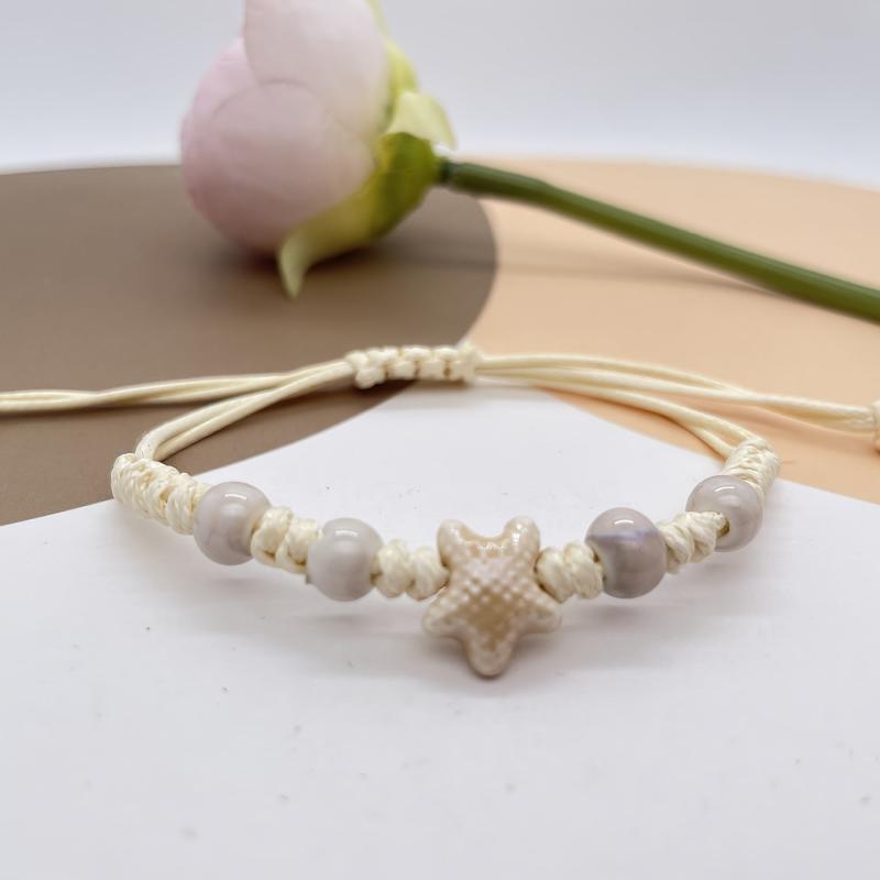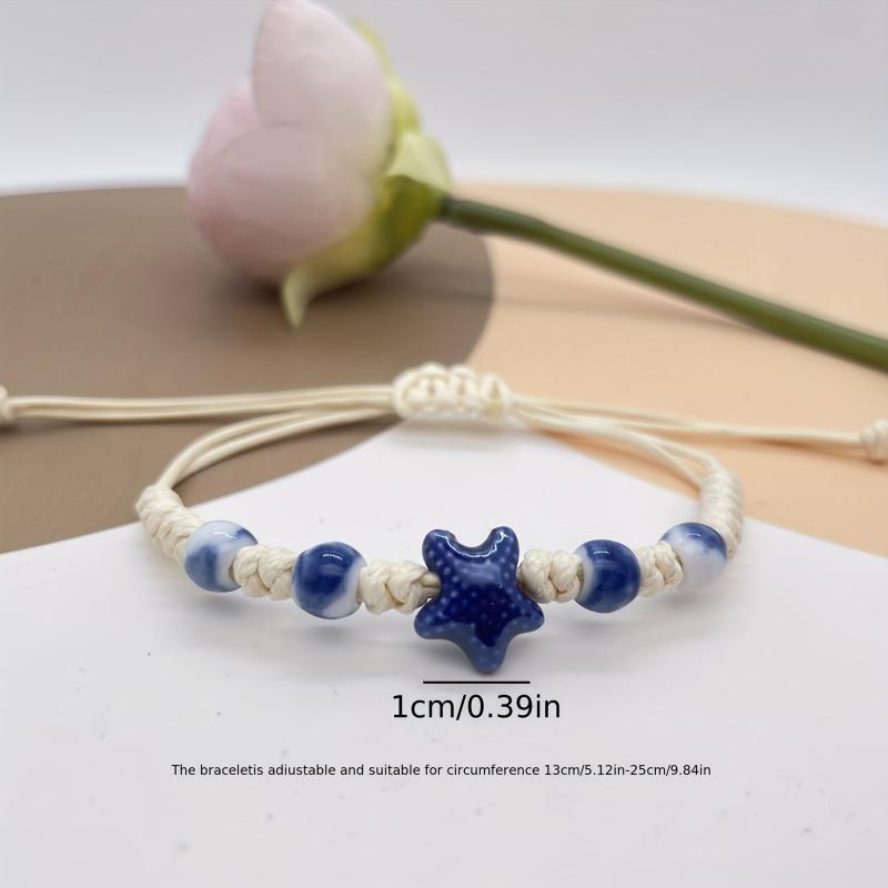 This bracelet is designed with a boho nautical style featuring starfish and shell beads made of synthetic stone. It is perfect for daily wear and as a gift for any occasion, especially Christmas.