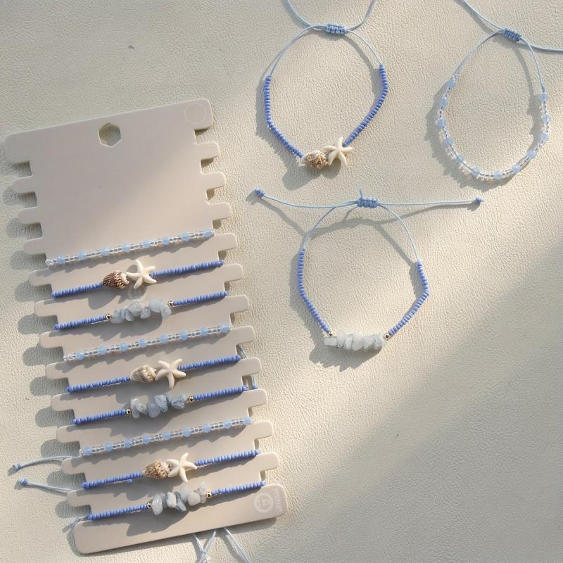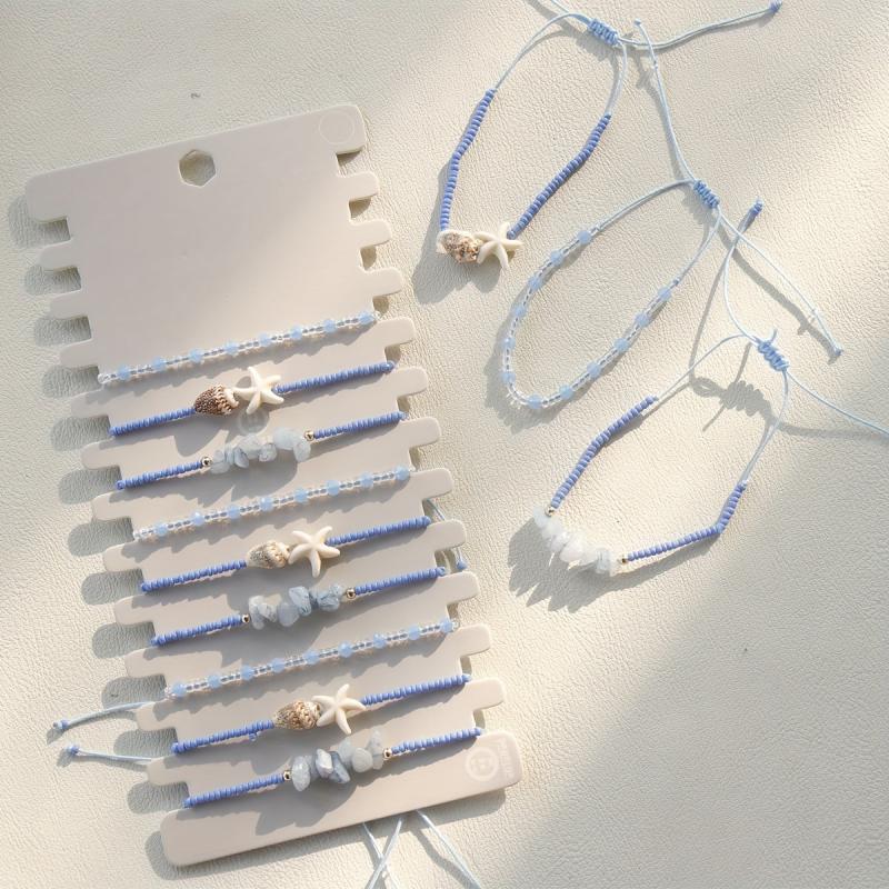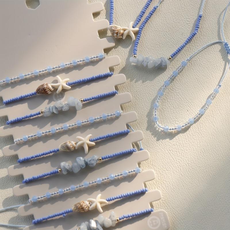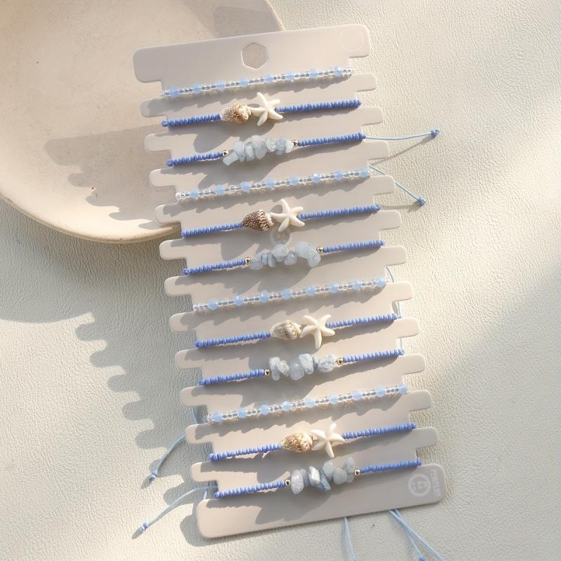 Enhance your vacation look with this bohemian-style bracelet set featuring natural stones and adjustable design. Perfect for parties too!