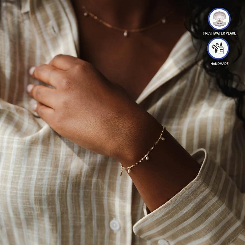 Elevate your look with this stunning freshwater pearl bracelet featuring natural stones. Perfect for everyday wear or as a thoughtful gift.