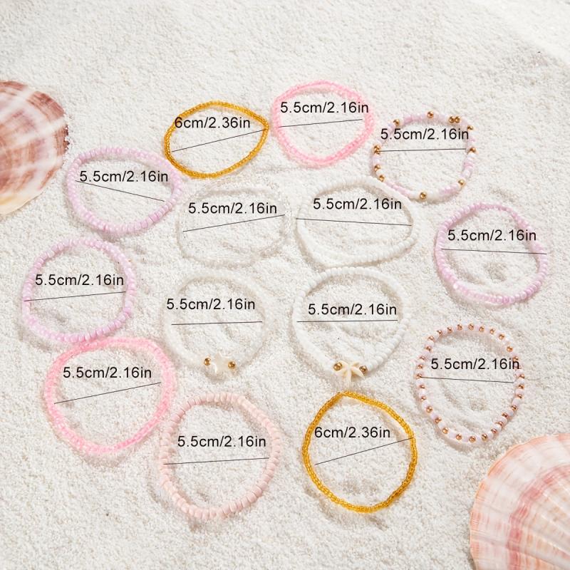 These 14 boho pink beaded bracelets feature starfish and pentagram charms, perfect for parties, proms, and more.