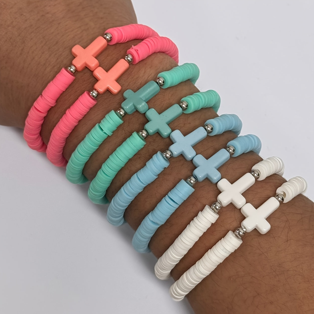 Get ready for summer with this set of 30 Bohemian rainbow polymer clay bracelets. These colorful stackable bands are perfect for women's beach and friendship jewelry.
