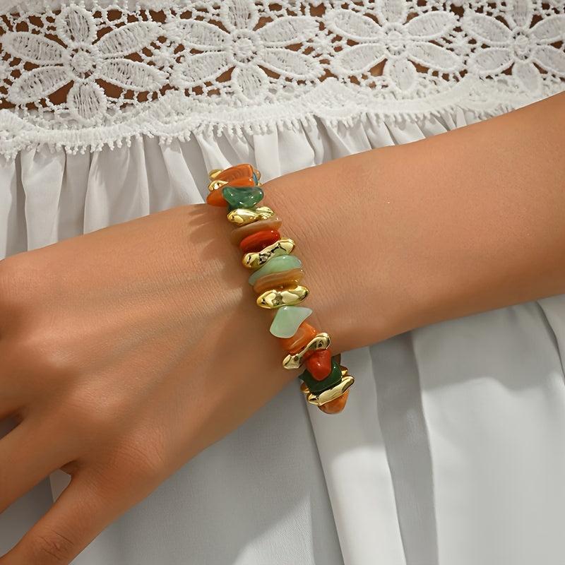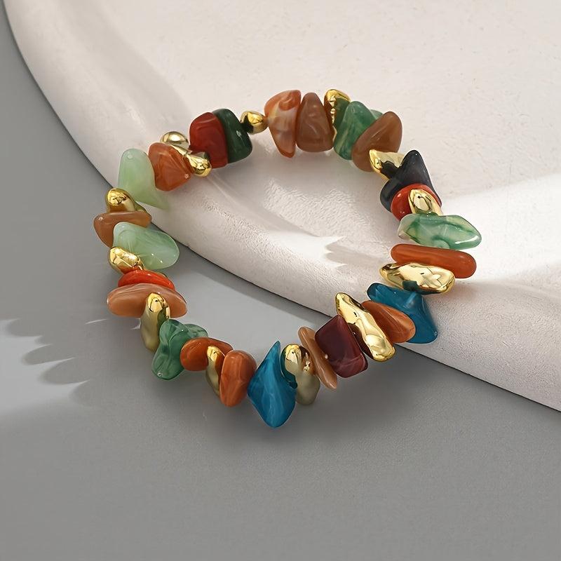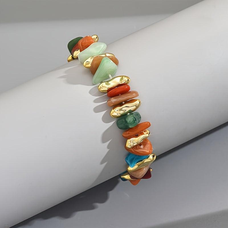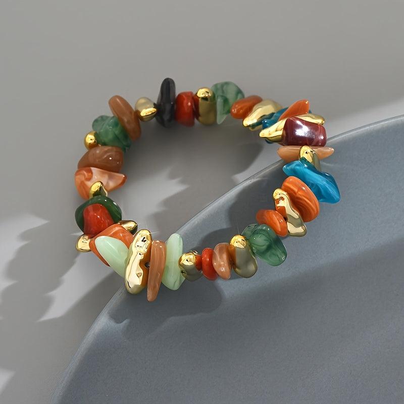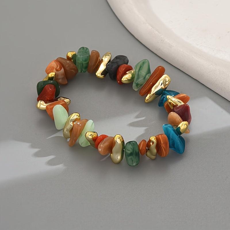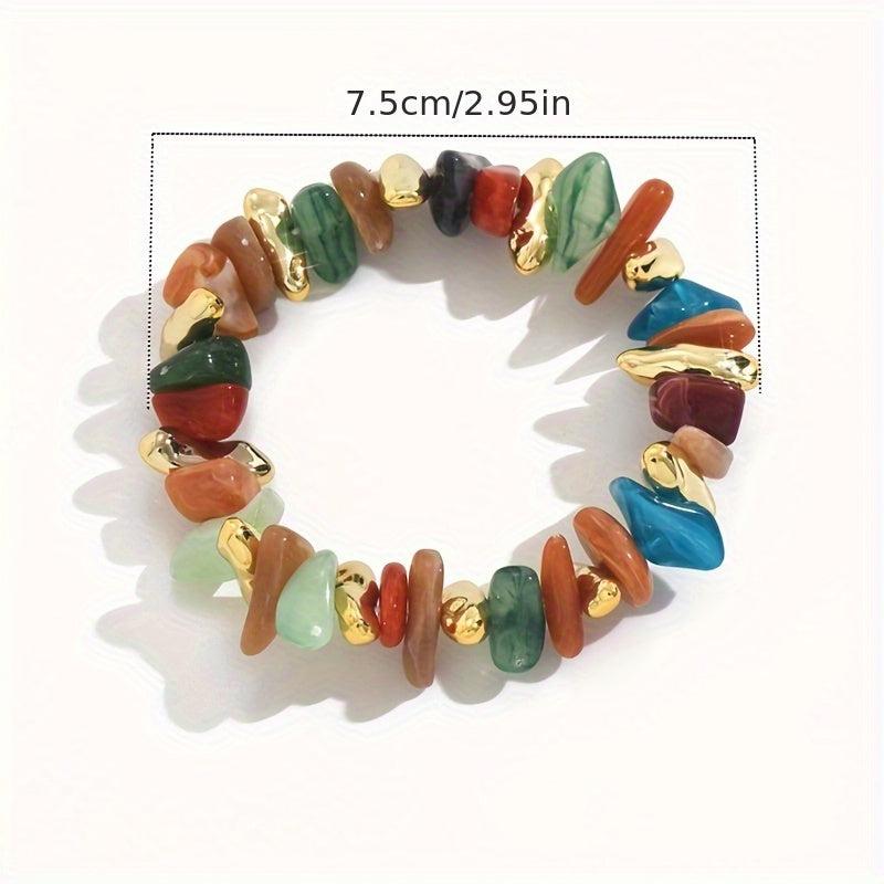 Add a touch of boho chic style to your look with this vibrant resin bead bracelet featuring colorful mixed stones. Perfect for everyday wear or parties, this accessory is sure to brighten up any outfit.