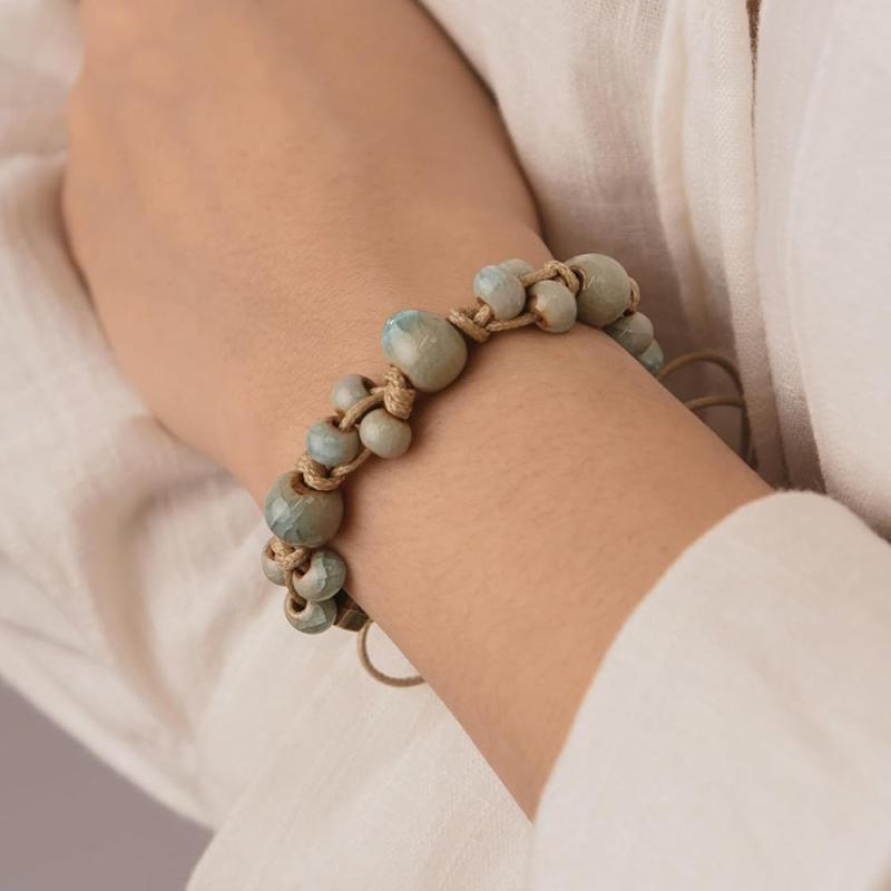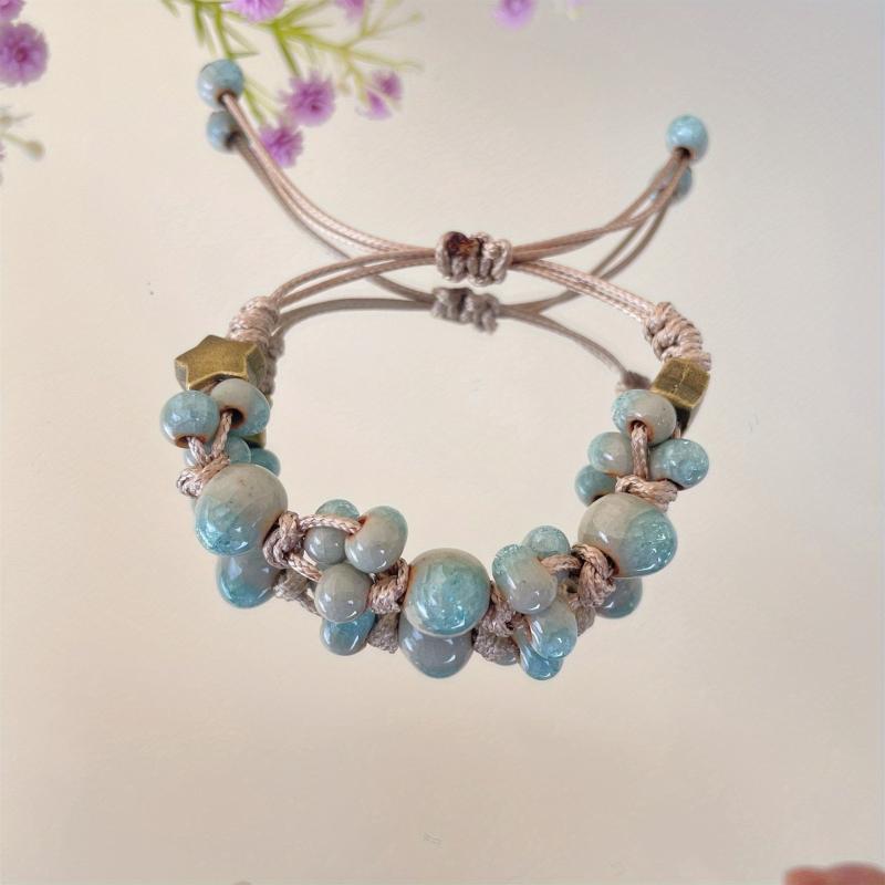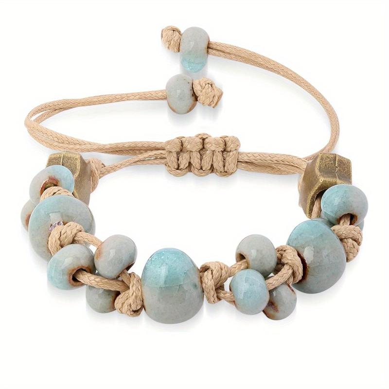 Elevate your look with this handcrafted bracelet featuring a bohemian braided rope design and turquoise colored beads. Perfect for daily wear or parties.
