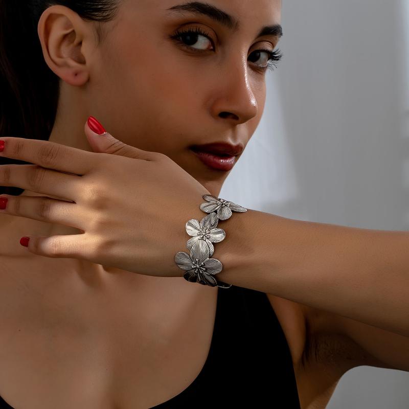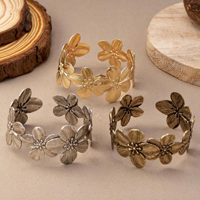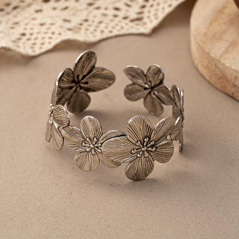 Embrace the bohemian vibe with this stylish bracelet that features a retro texture and fashionable floral design. Perfect for adding a touch of boho chic to your outfit.