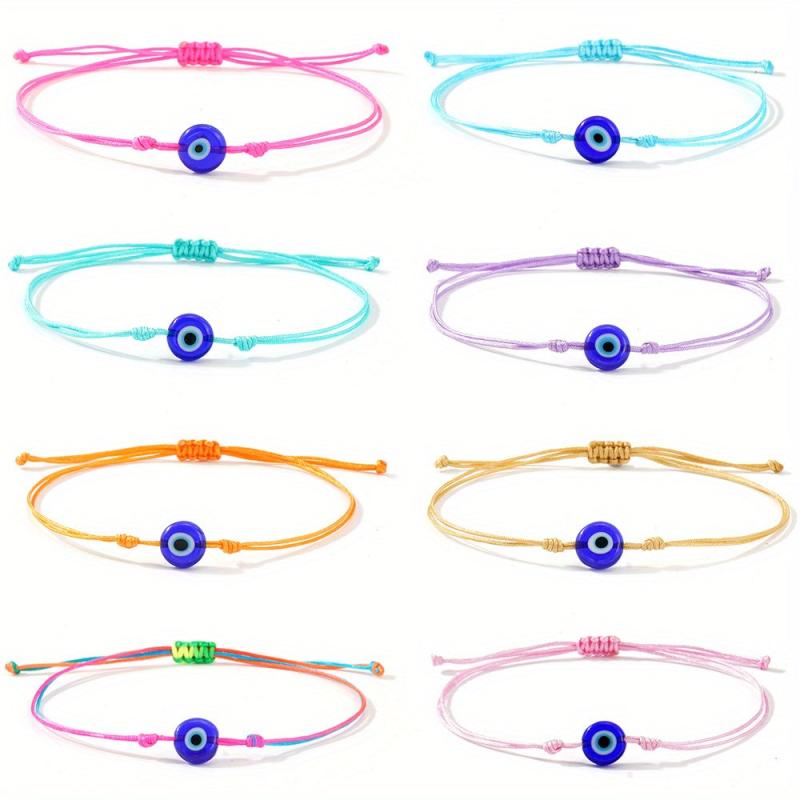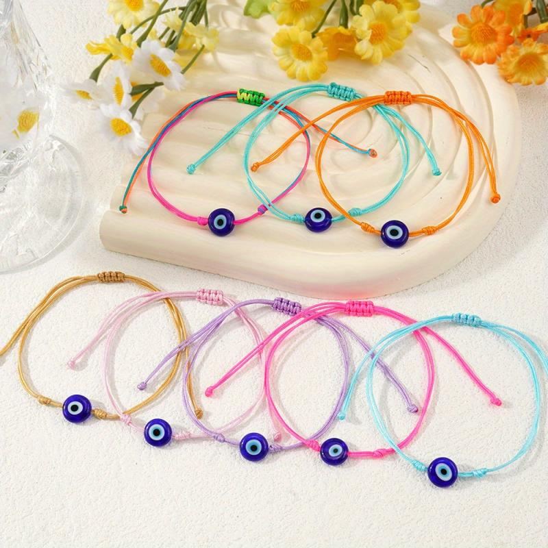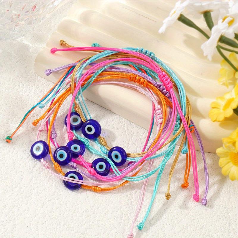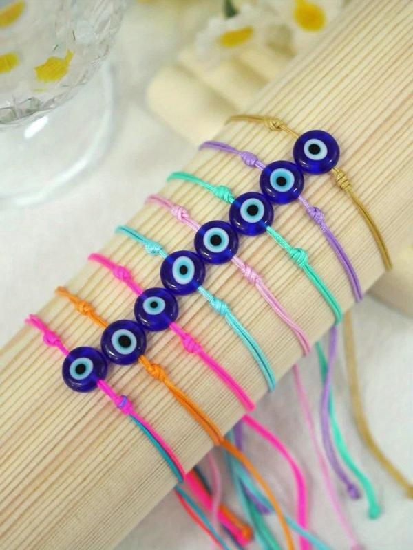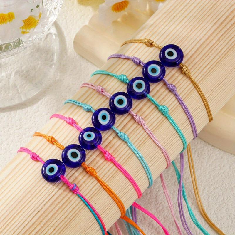 Elevate your accessories with this Bohemian flat glass eye rainbow bracelet. This lucky charm adds a pop of color and style to your daily commute or casual outings.