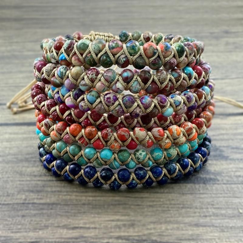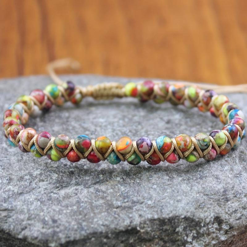 Enhance your look with this handcrafted bohemian bracelet featuring natural stones and golden accents. Adjustable and versatile, perfect for daily wear or on vacation.