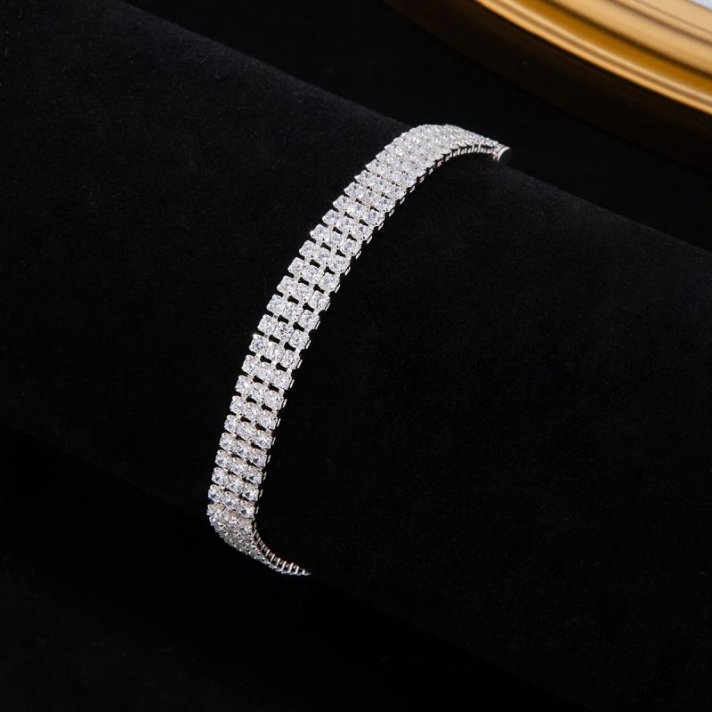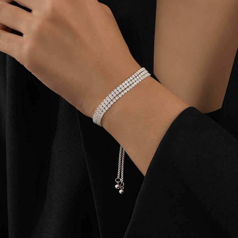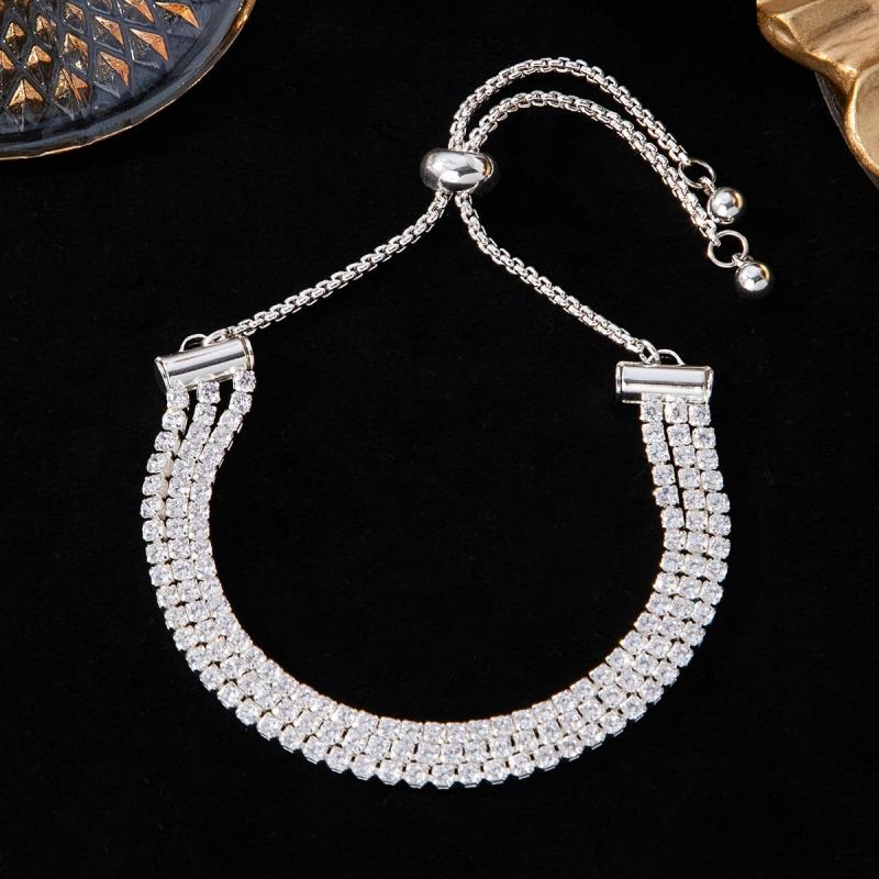 This boho style silver plated copper bracelet with rhinestone accents is perfect for daily and vacation wear. It features an adjustable design to fit most wrists.