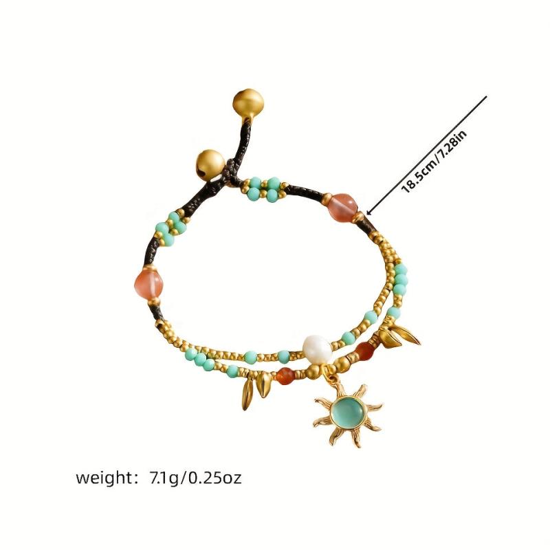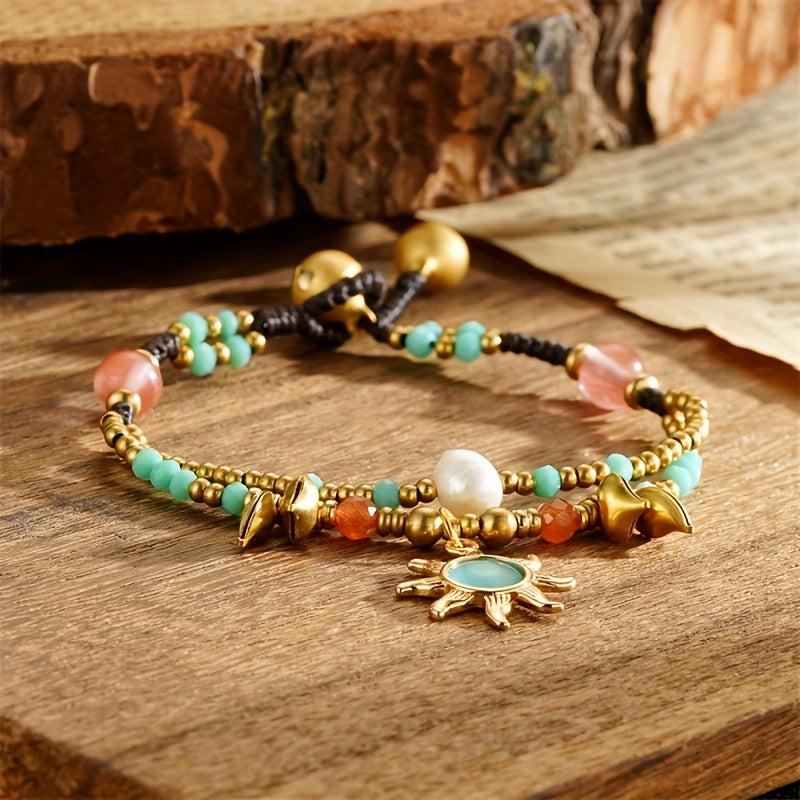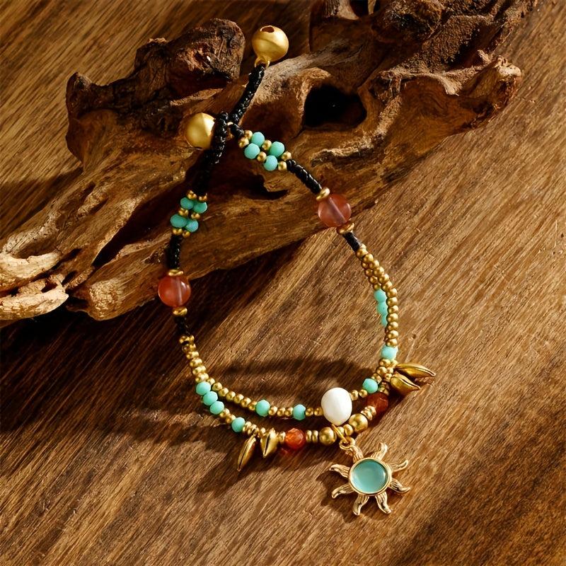 Elevate your style with this bohemian double-layer bracelet featuring freshwater pearls and natural turquoise. Ideal for everyday wear and vacation vibes. A perfect gift!