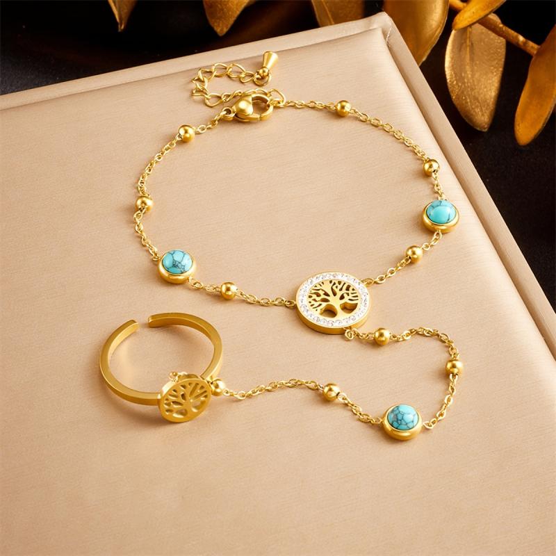 This vintage bohemian style bracelet features a tree charm and resin beads. Made from stainless steel, it is perfect for daily wear for both men and women.
