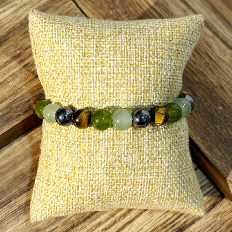 Elegant and rich Bohemian bracelet featuring natural stone beads with August birthstone and golden accents. Perfect for everyday wear or as a thoughtful mother's gift.