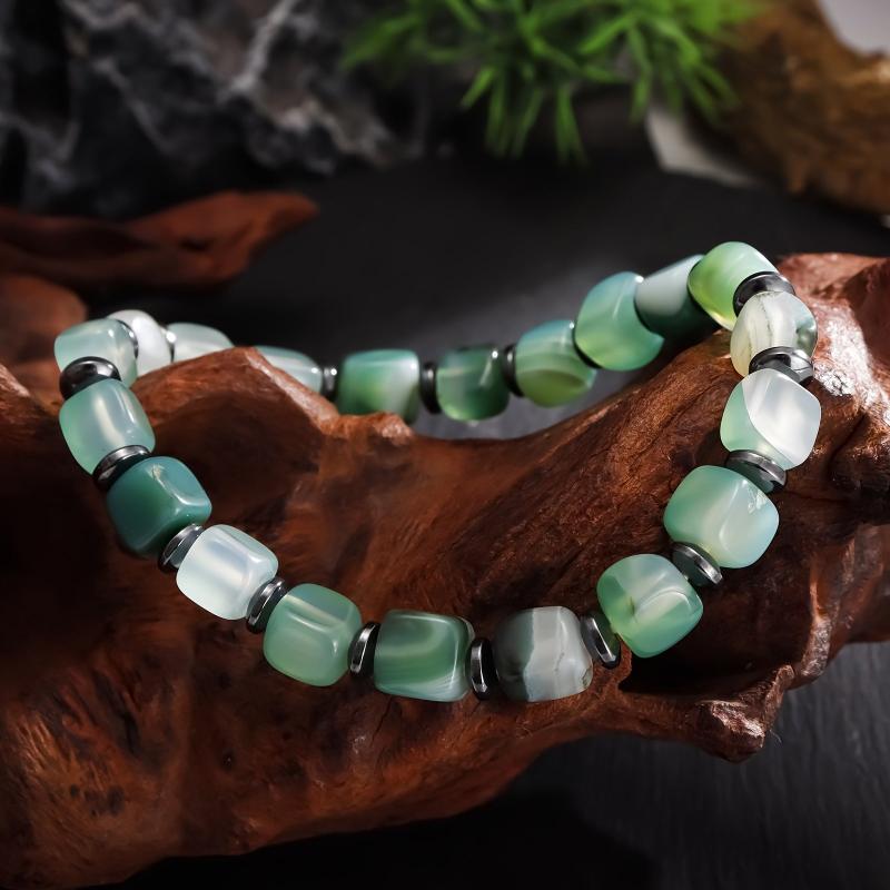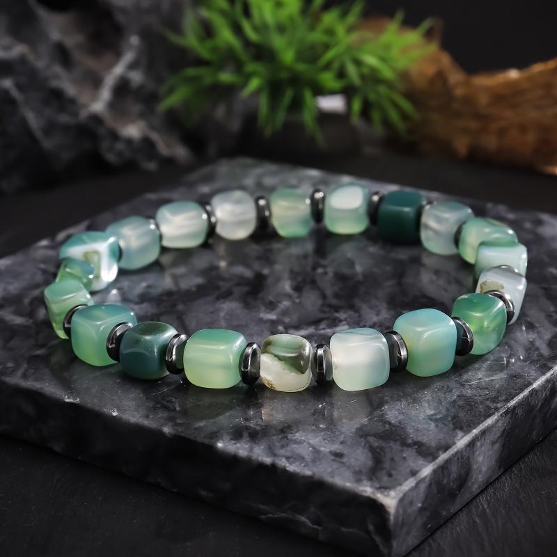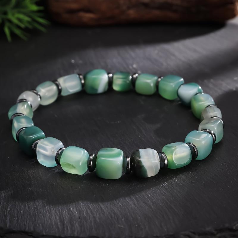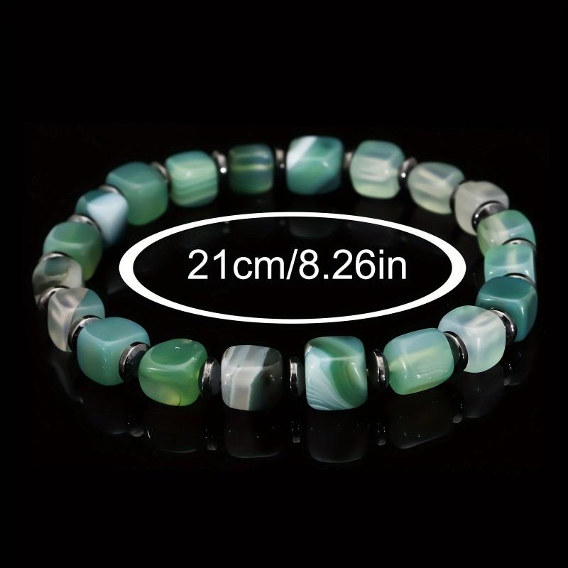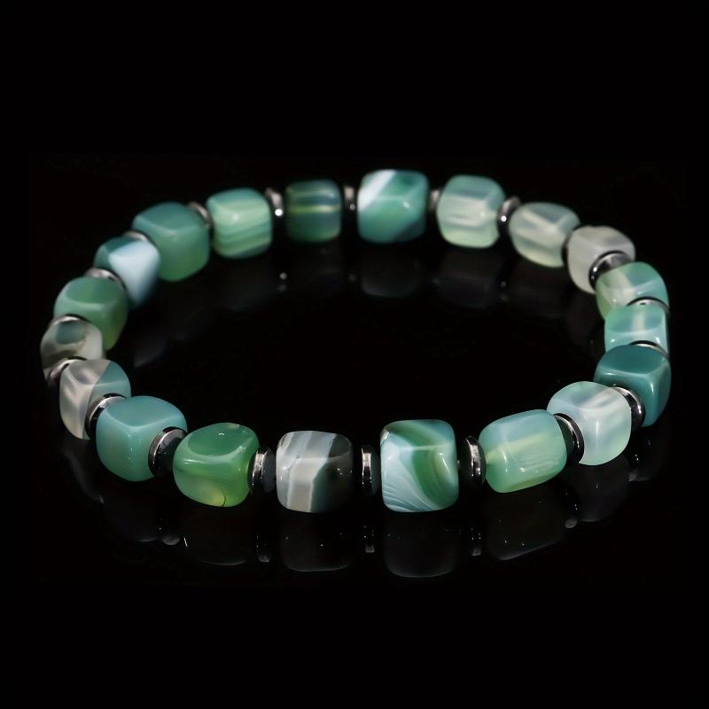 Stunning handmade bracelet featuring natural green agate beads with hematite spacer. Elastic stretch design for easy wear. Unisex boho vintage style jewelry.