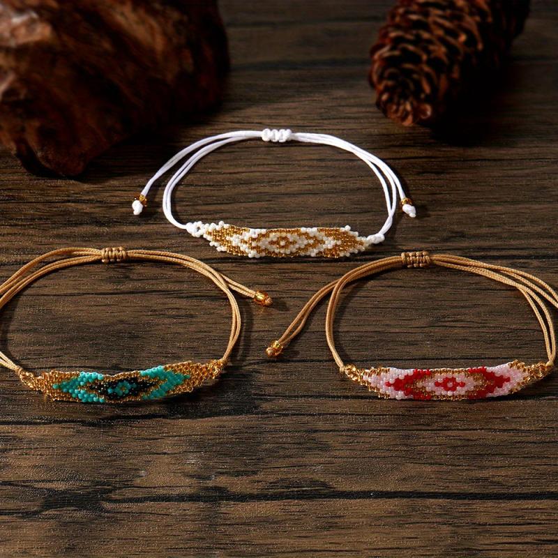 Adjustable rope wristband for daily vacation accessory. Row beaded, no plating, suitable for all seasons.