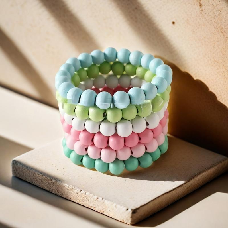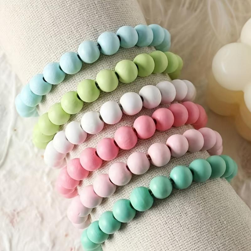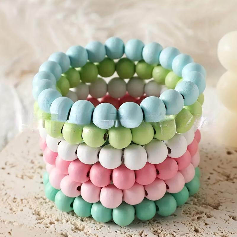 Boho Wooden Bead Stretch Bracelets Set - Colorful Stackable Bangle