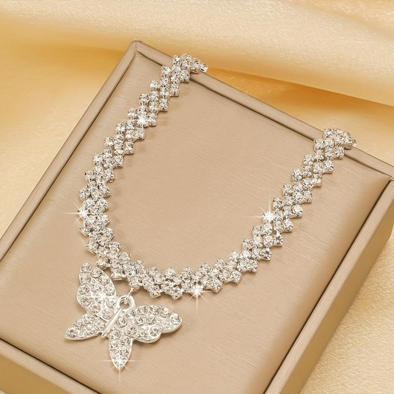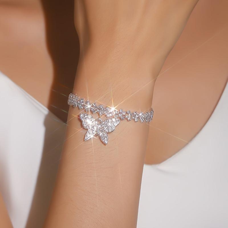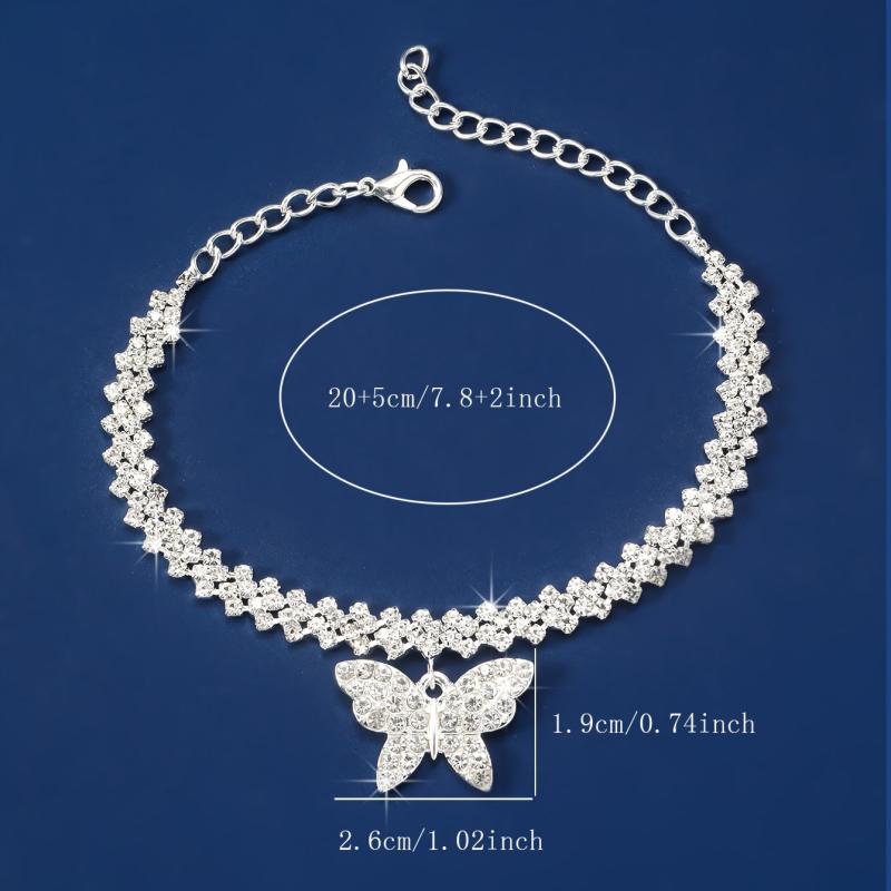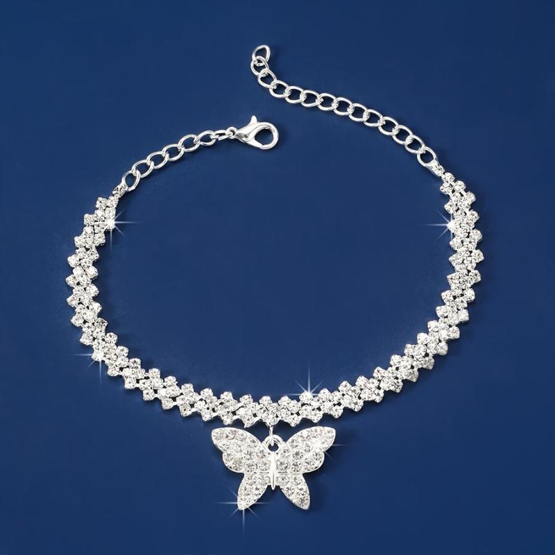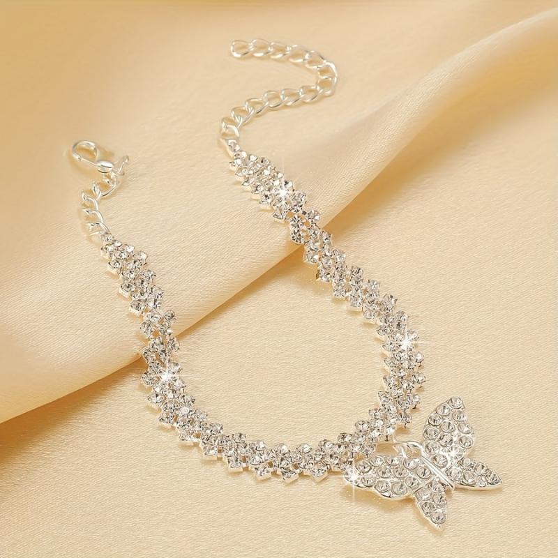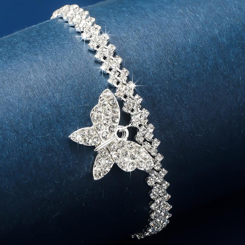 Add a touch of glamour to your casual attire with this butterfly pendant bracelet featuring sparkling rhinestones. Perfect for all seasons.