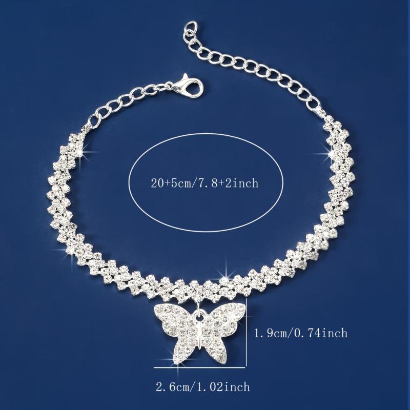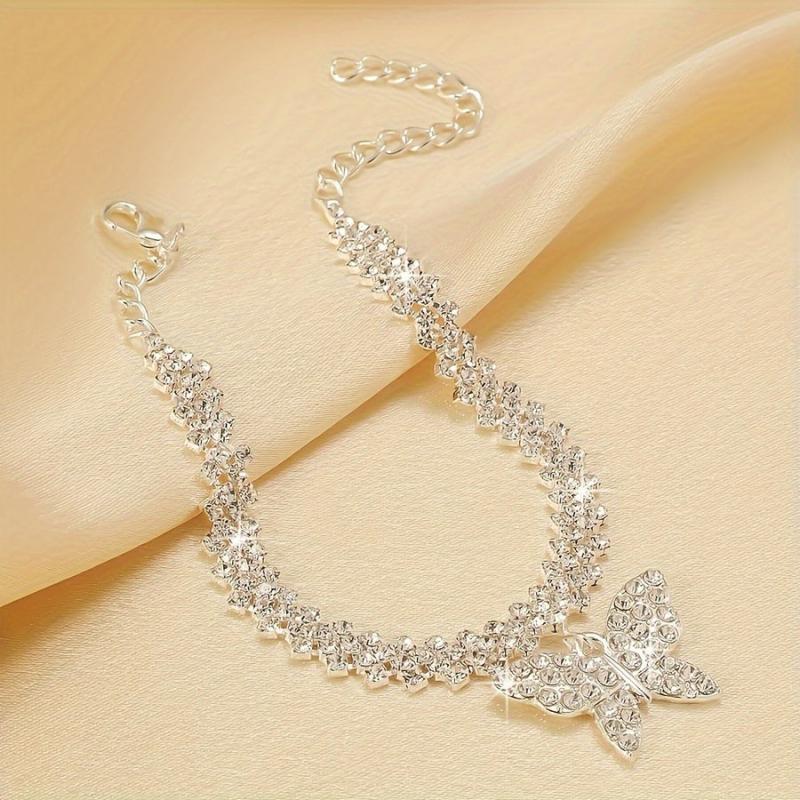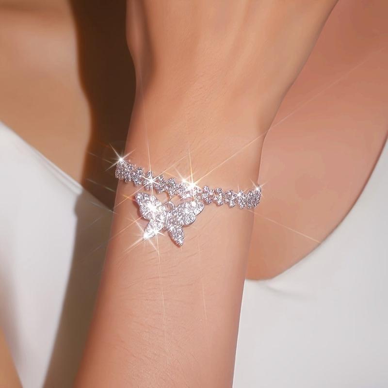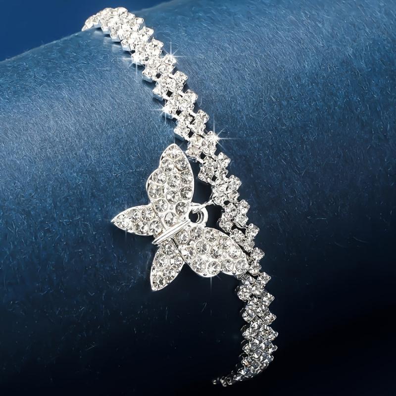 Add a touch of elegance to your outfit with this stunning butterfly bracelet featuring sparkling rhinestones. Perfect for parties or everyday wear.