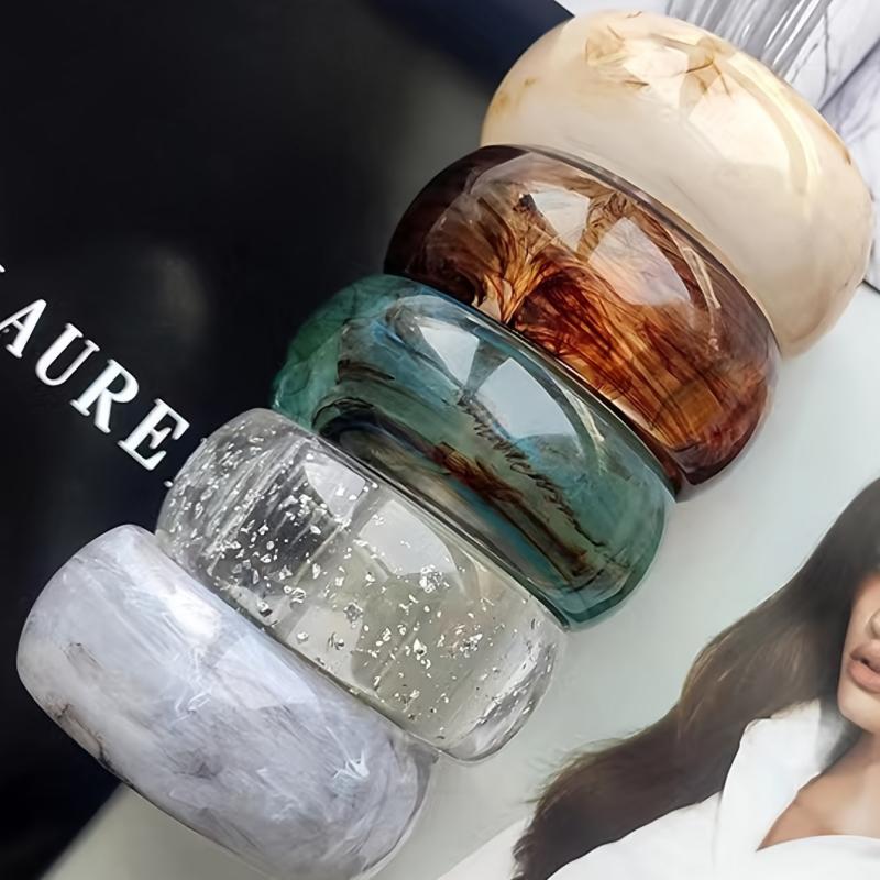 Candy Resin Gradient Wide Bangle Geometric Artistic Elegance