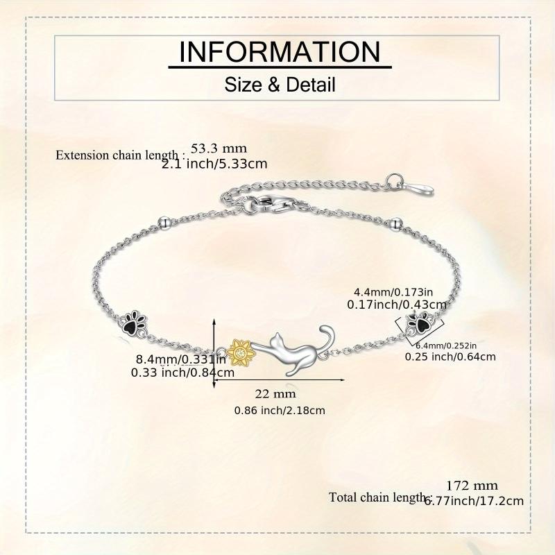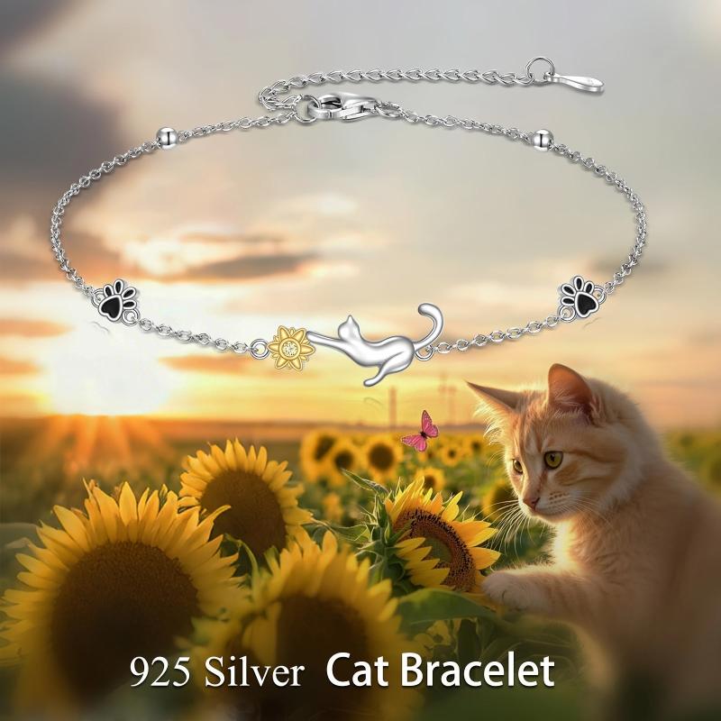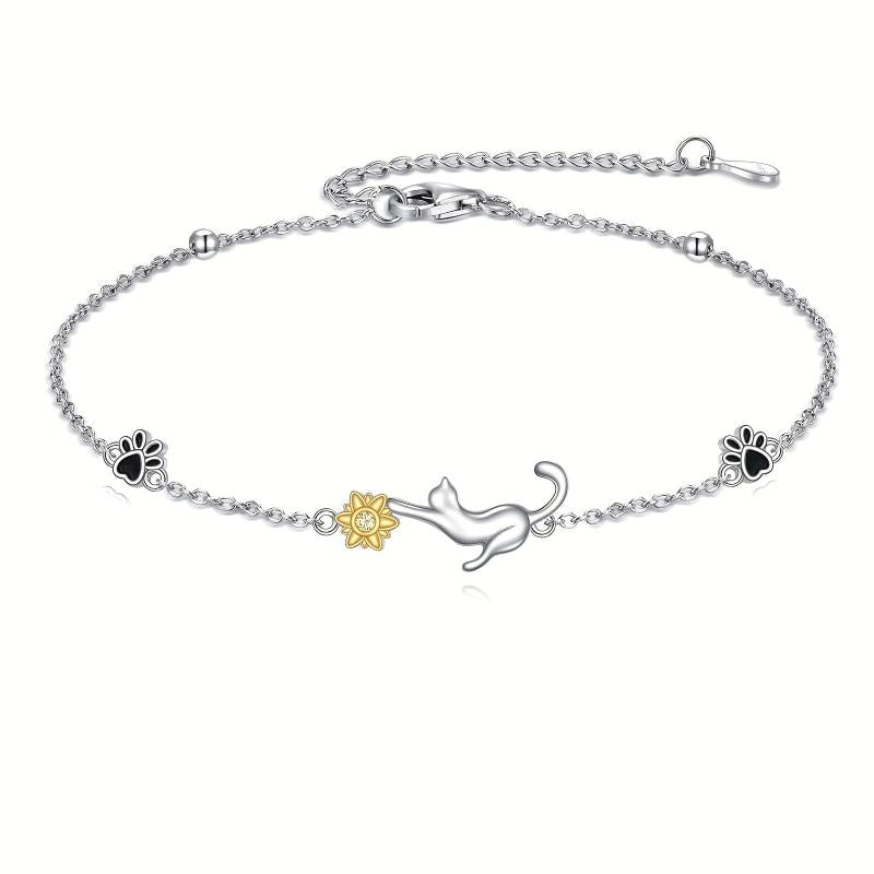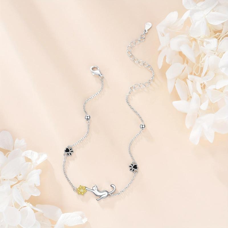 This elegant cat bracelet is made of 925 sterling silver, featuring an adjustable link chain for a comfortable fit. It's a perfect piece of animal jewellery for cat lovers.