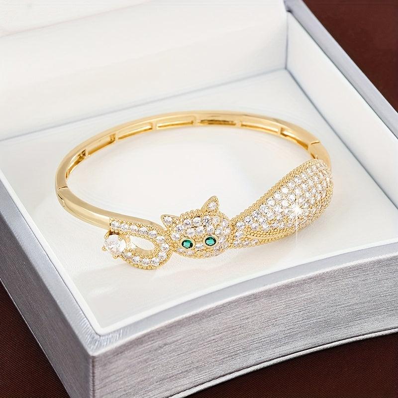 This playful cat bracelet is adorned with zirconia crystals and a golden plated finish, perfect for casual attire and gift giving. Seasonal favorite!