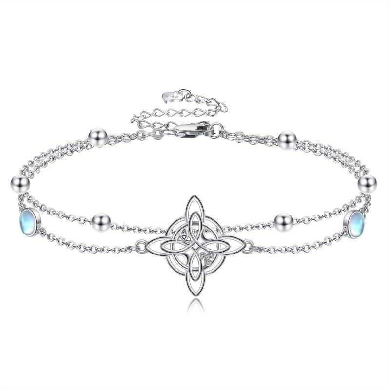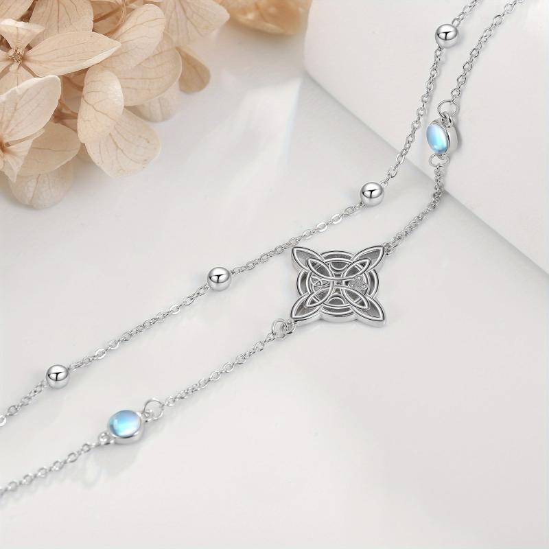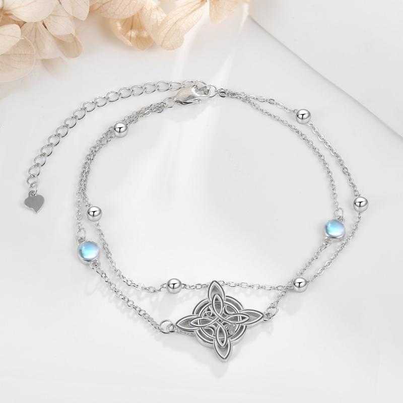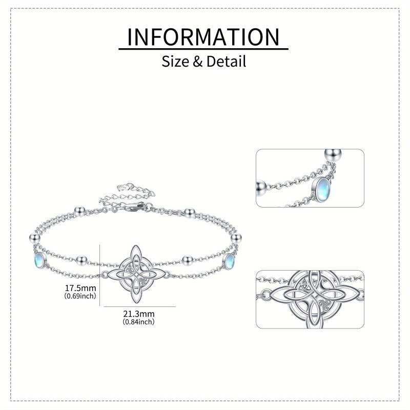 Embrace the magic with this stunning Witches Knot Bracelet made of 925 sterling silver with a synthesis moonstone. The intricate Celtic knot design adds a touch of mystique to your look, perfect for any Wicca enthusiast.