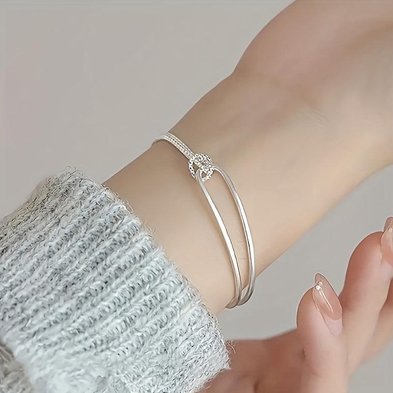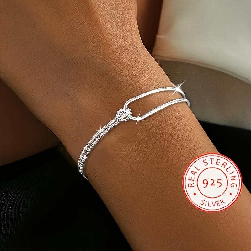 This bracelet is a charming and versatile piece, with a pure silvery geometric design. It is made of S925 hypoallergenic material, suitable for daily wear. Perfect for all occasions.