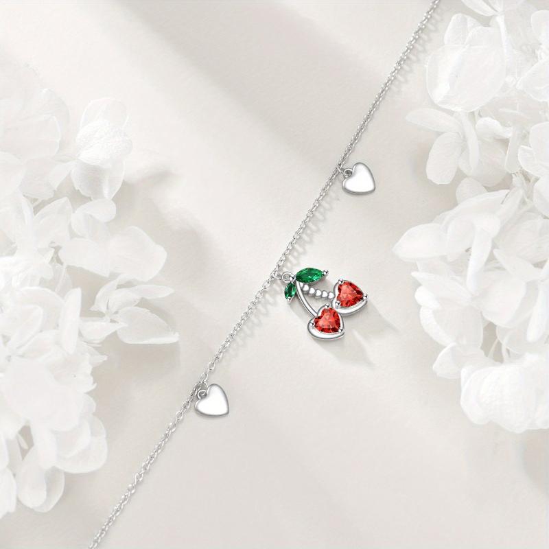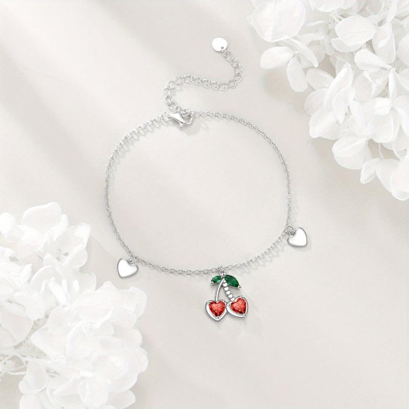 This cherry link bracelet is made of 925 sterling silver, a perfect fruit-inspired accessory for women, wives, friends, and sisters.