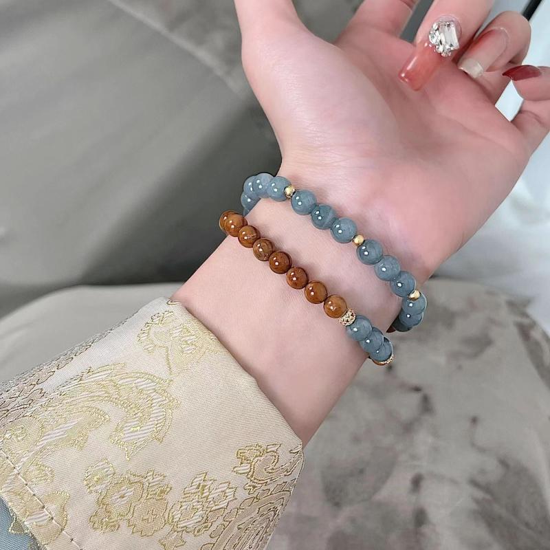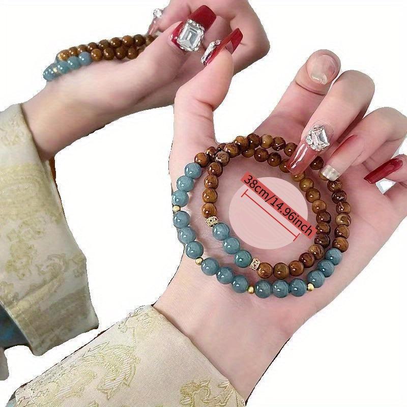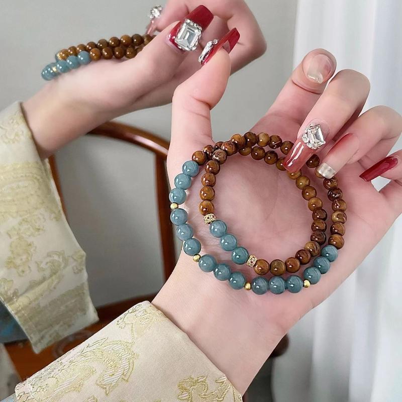 Elevate your style with this Chinese inspired double circle bracelet and brown beaded lightweight accessory perfect for everyday wear or parties. It's a versatile cultural piece that adds a touch of elegance to any outfit.