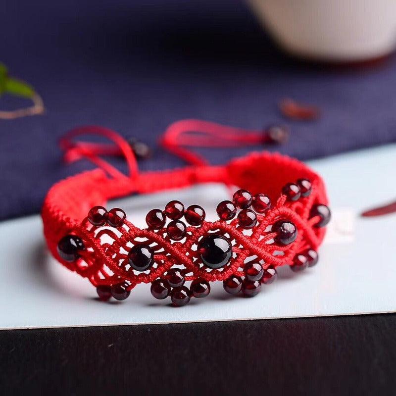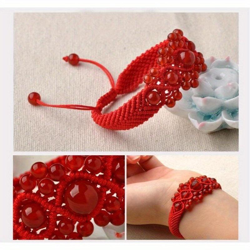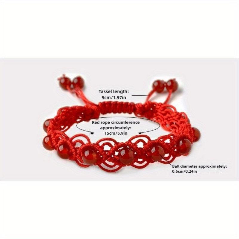 This hand woven red agate red rope bracelet features a flower design symbolizing wealth. Perfect for couples and girlfriends who appreciate ethnic style jewelry.