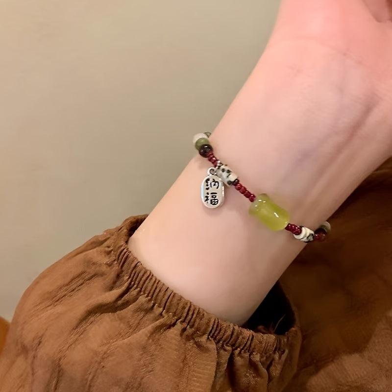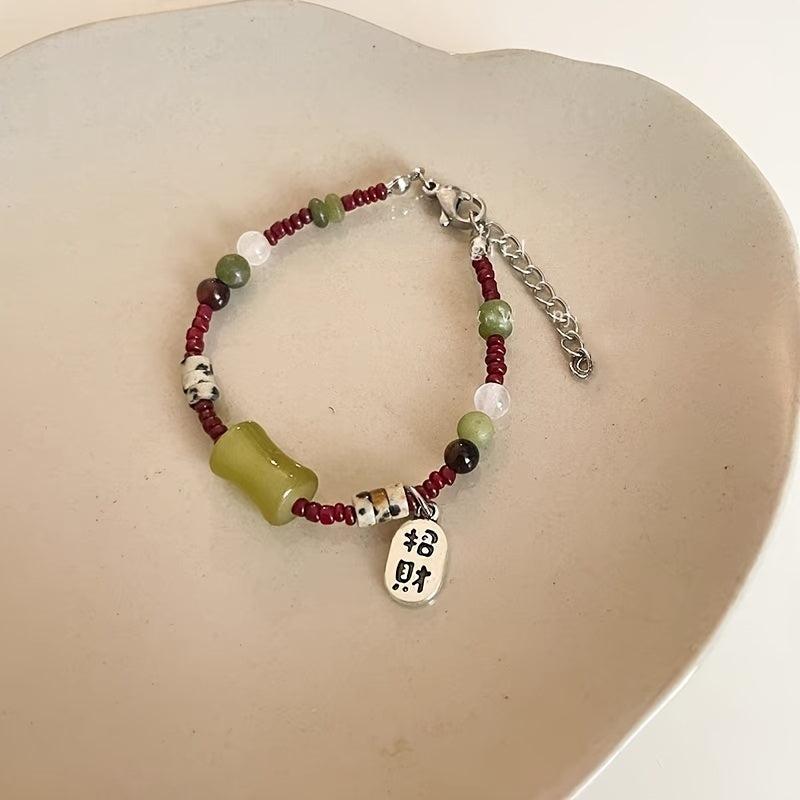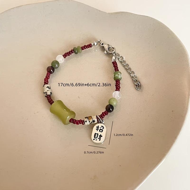 Embrace good fortune with this stylish bracelet made of natural stone beads. Its Chinese design attracts wealth and prosperity.