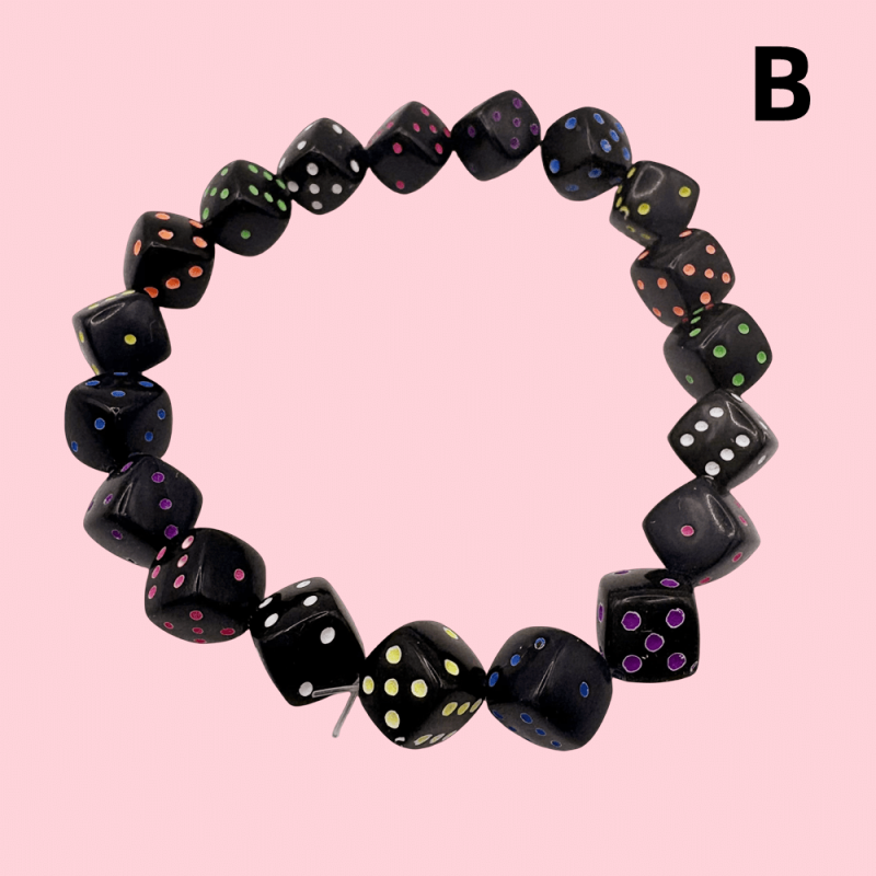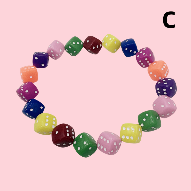 Add a pop of color to your outfits with this vibrant acrylic dice bracelet that is perfect for both everyday wear and parties.
