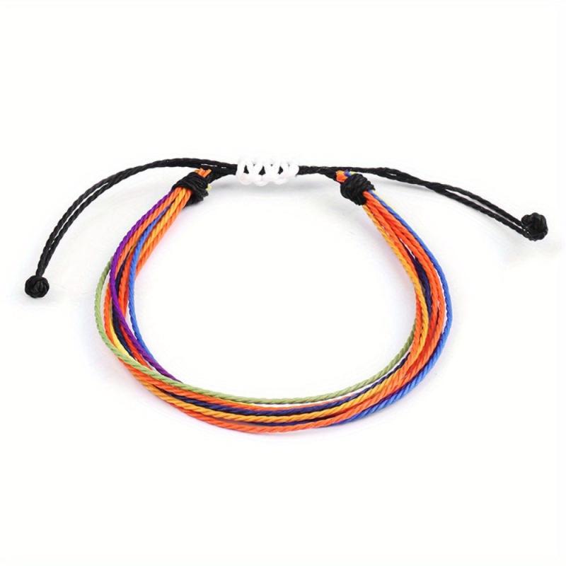 This creative weaving bracelet features a mix of fresh colors. It is a vibrant and adjustable accessory for women to add a pop of color to their outfits.