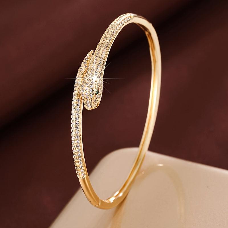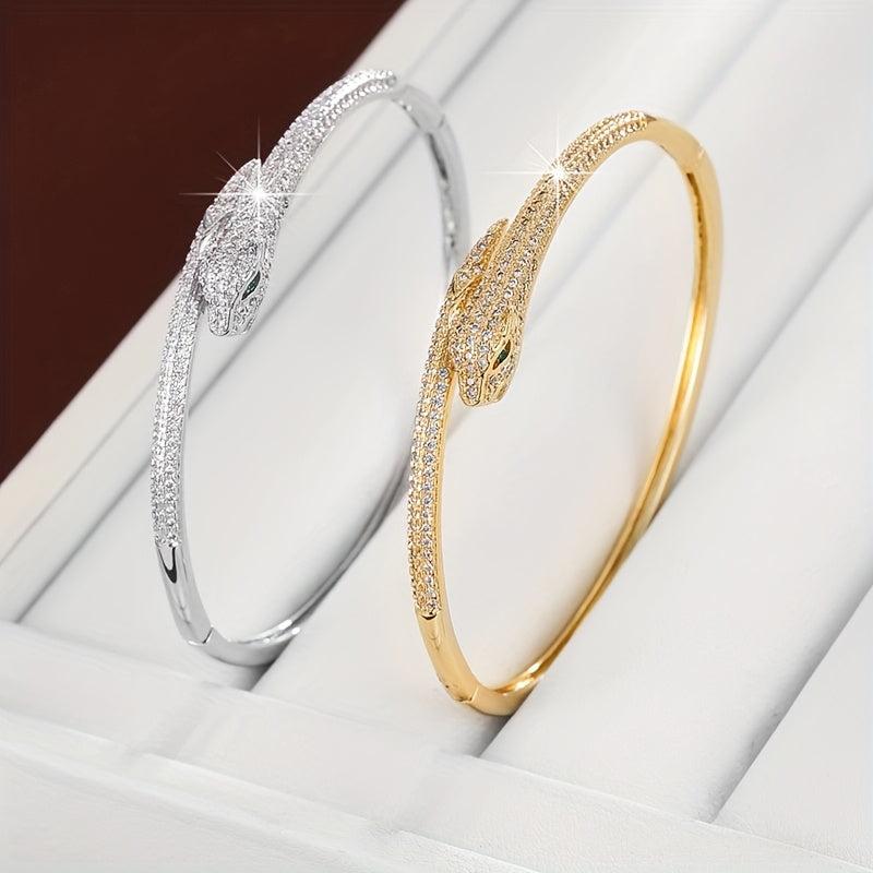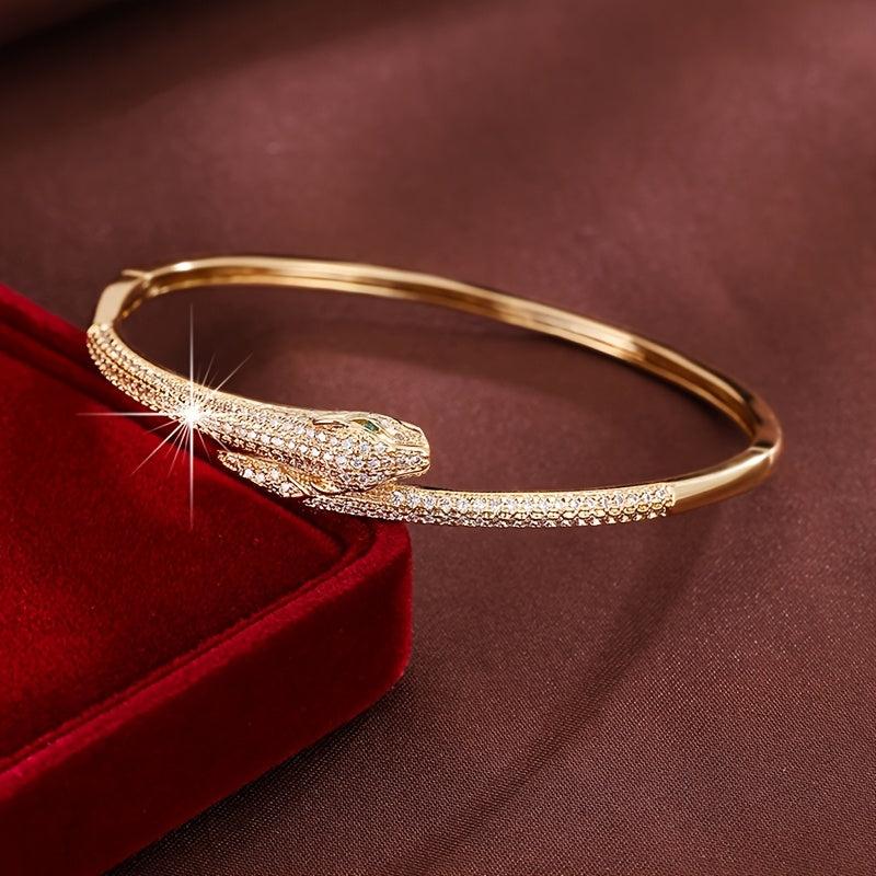 Stylish copper bangle with sparkling zirconia accents, perfect for daily wear or gifting. Features an animal motif design. Ideal for a sporty and chic look.