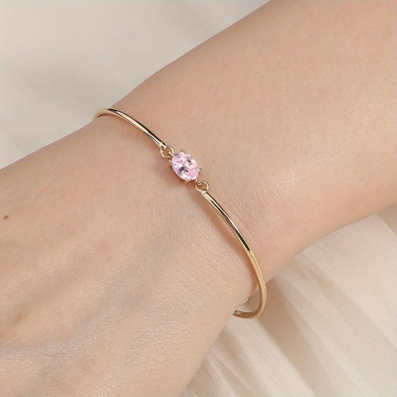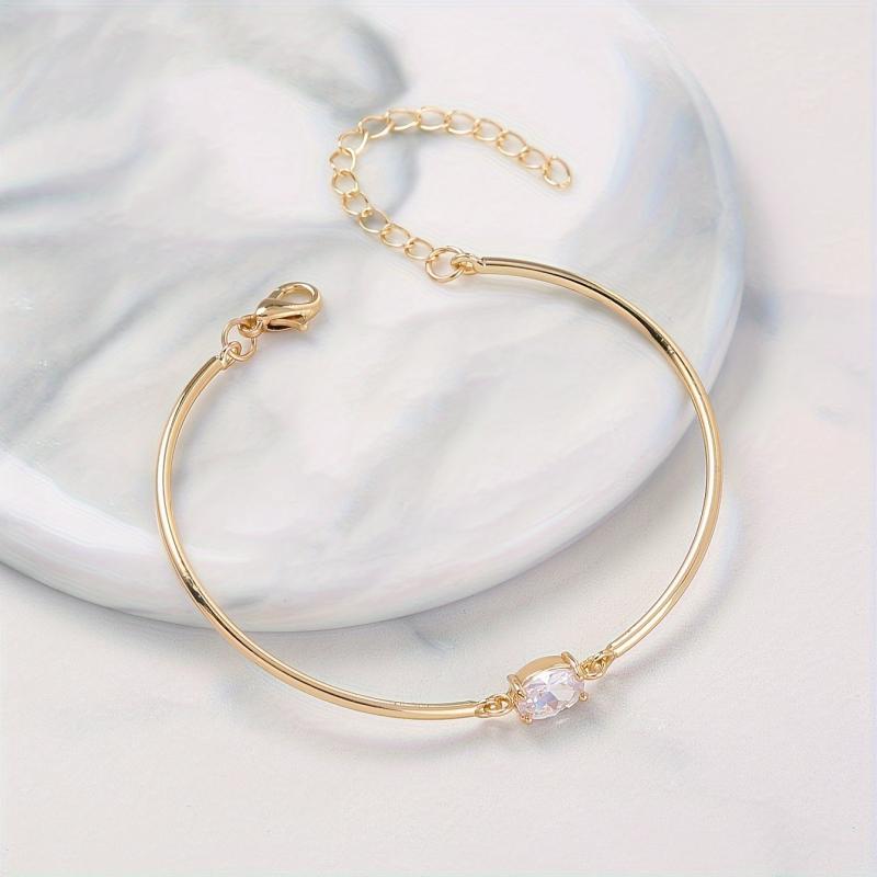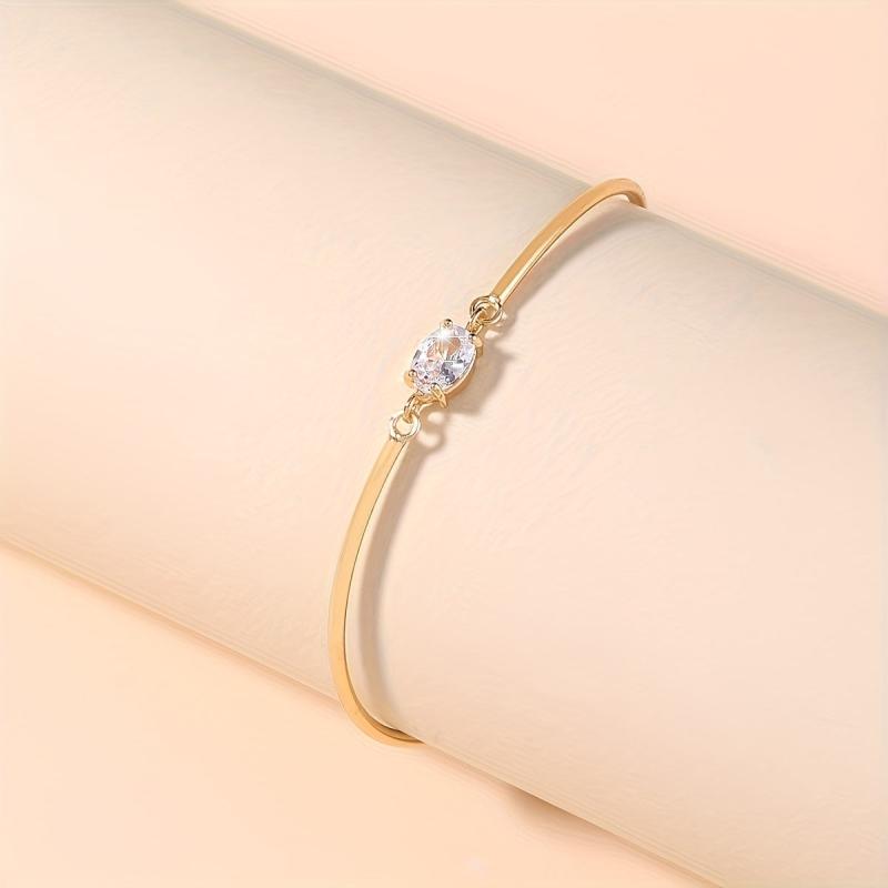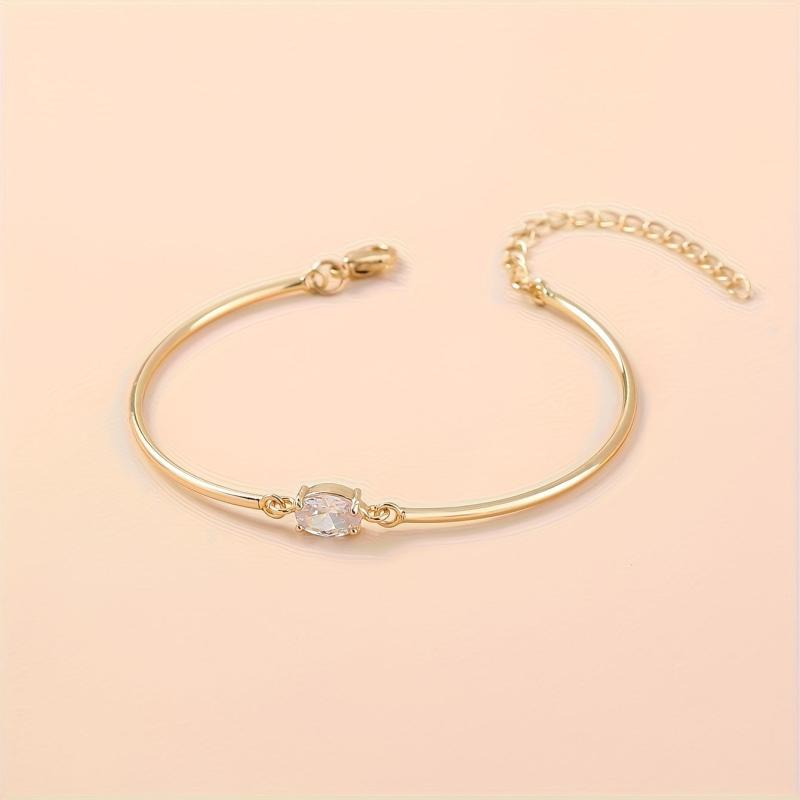 Elegant oval cubic zirconia bracelet made with copper and synthetic gemstones, ideal for everyday wear or special occasions.